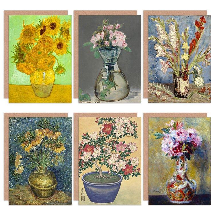 Renoir Koson Van Gogh Manet Sunflowers Bouquet Vase Mixed Fine Art Greeting Card Pack of 6