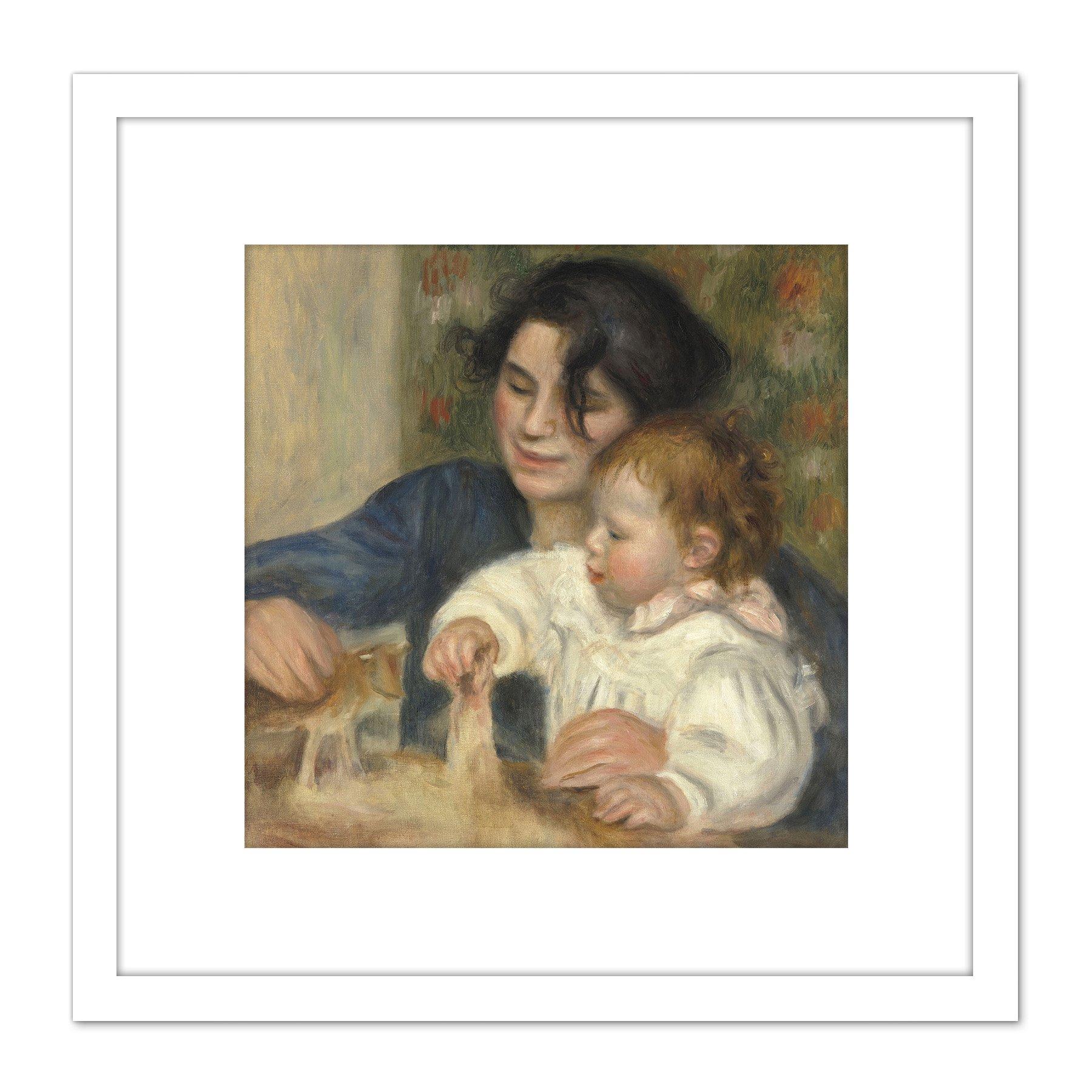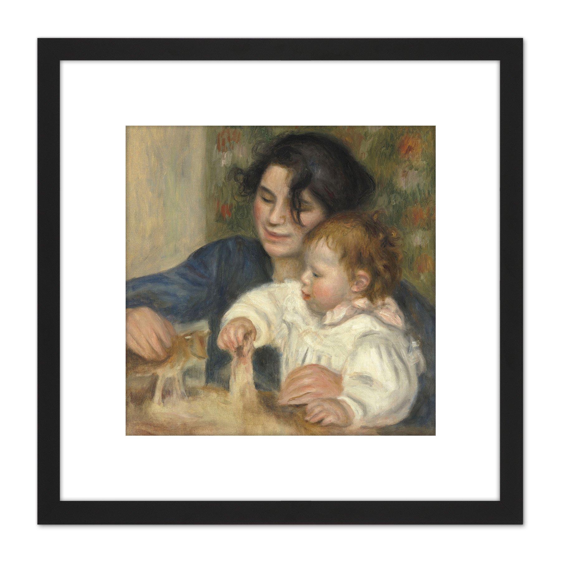 Auguste Renoir Gabrielle And Jean 8X8 Inch Square Wooden Framed Wall Art Print Picture with Mount