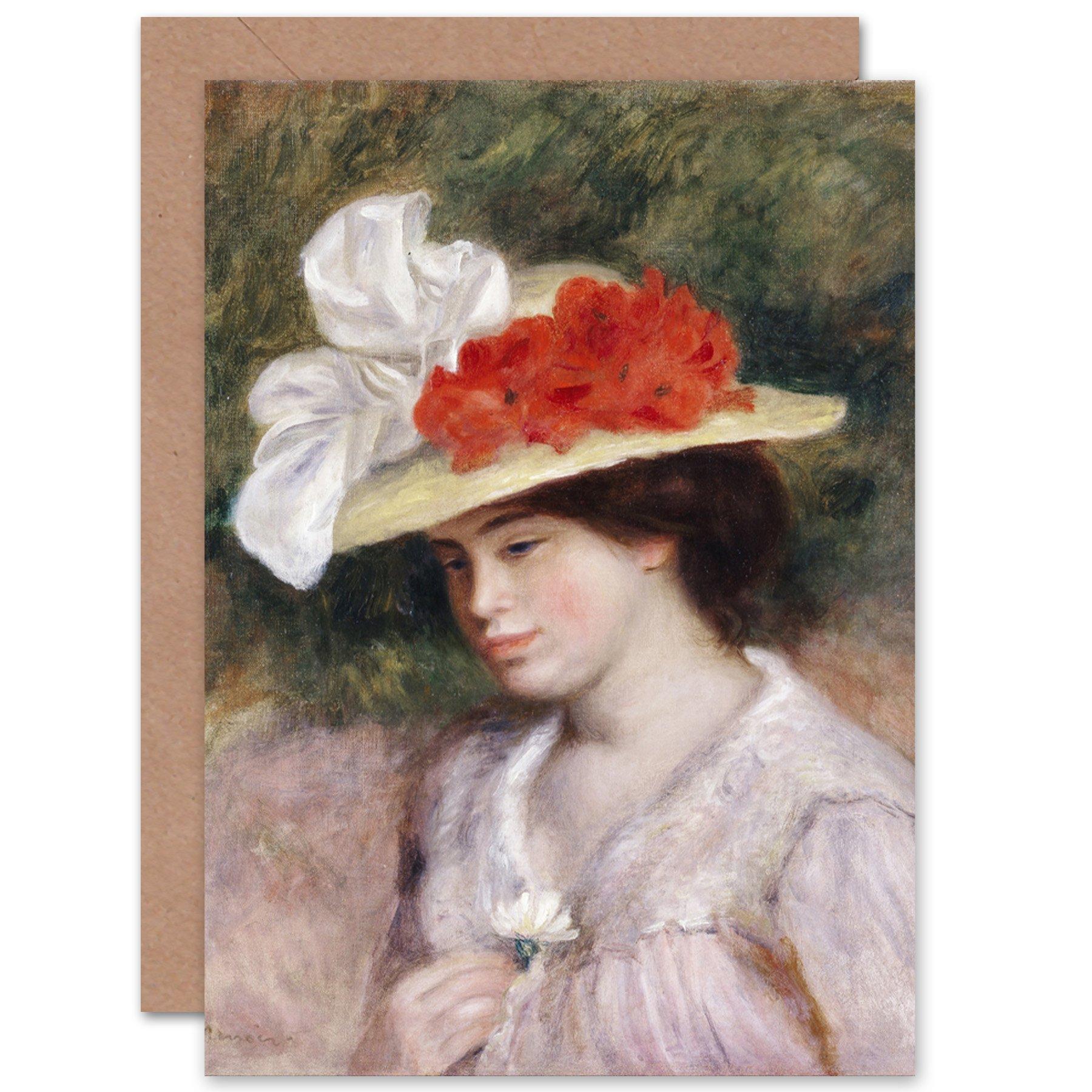 Renoir Woman In A Flowered Hat Fine Art Greetings Card Plus Envelope Blank inside
