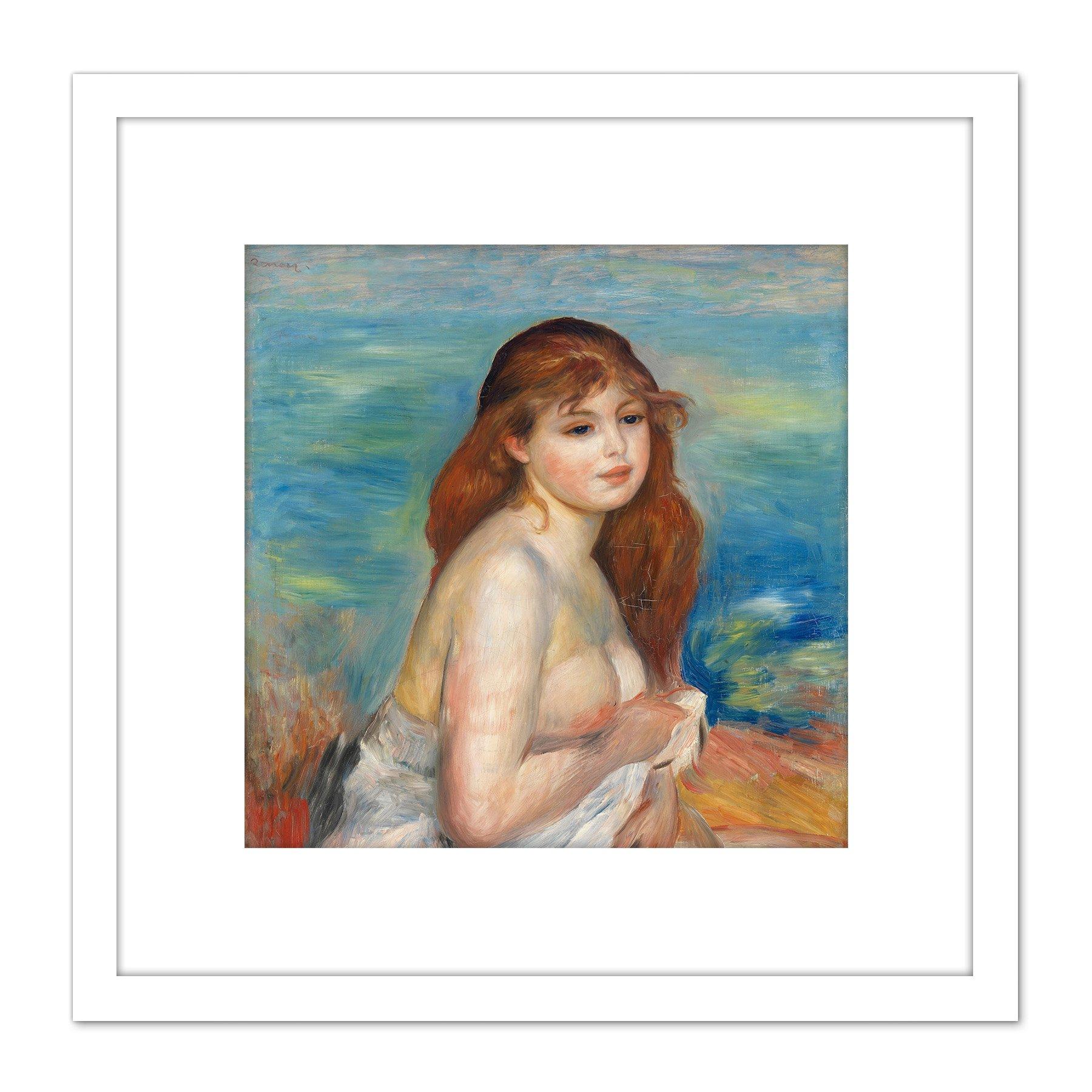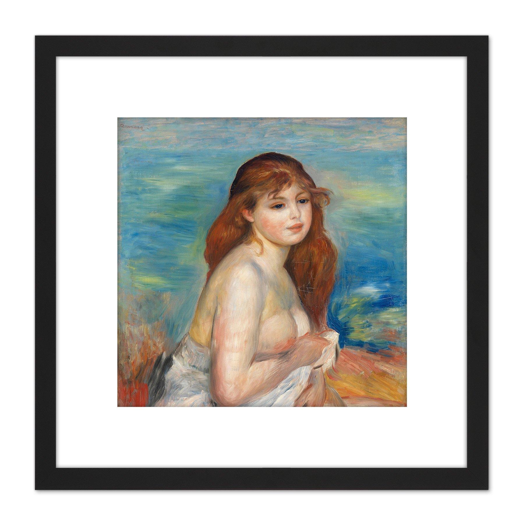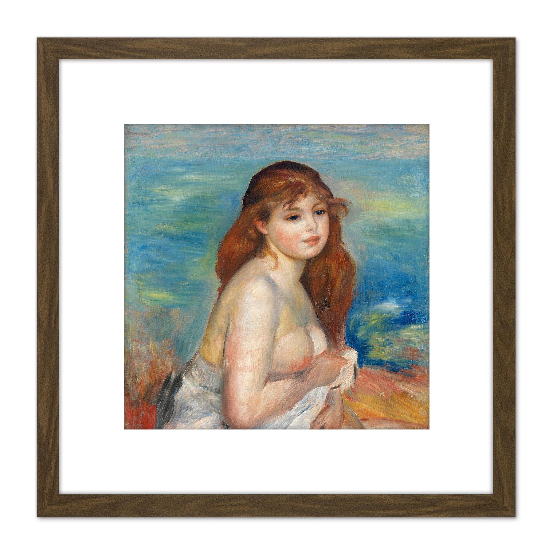 Auguste Renoir Etter Badet Painting 8X8 Inch Square Wooden Framed Wall Art Print Picture with Mount