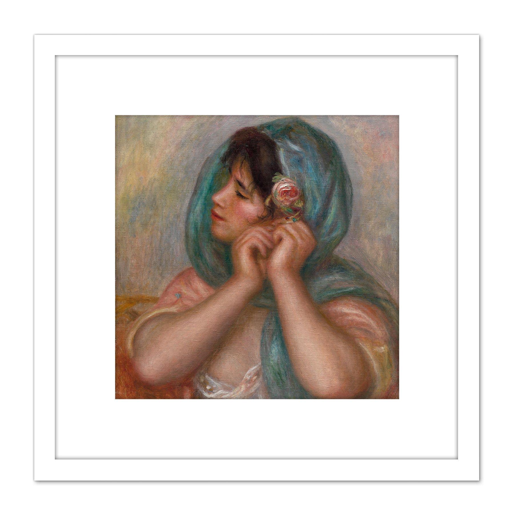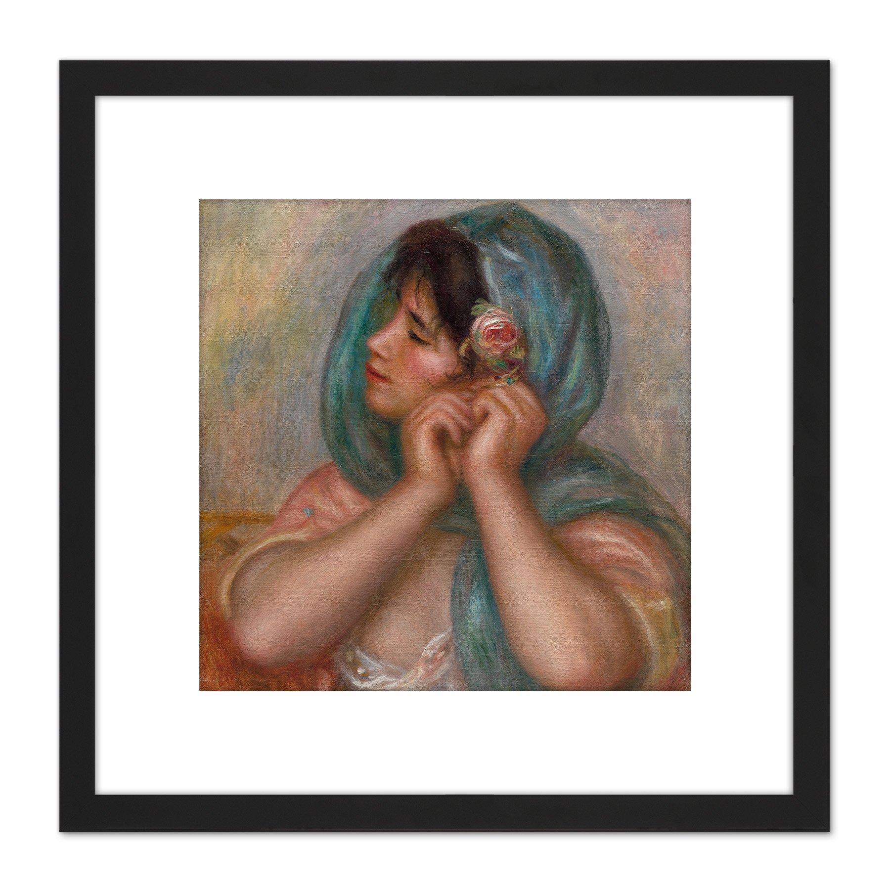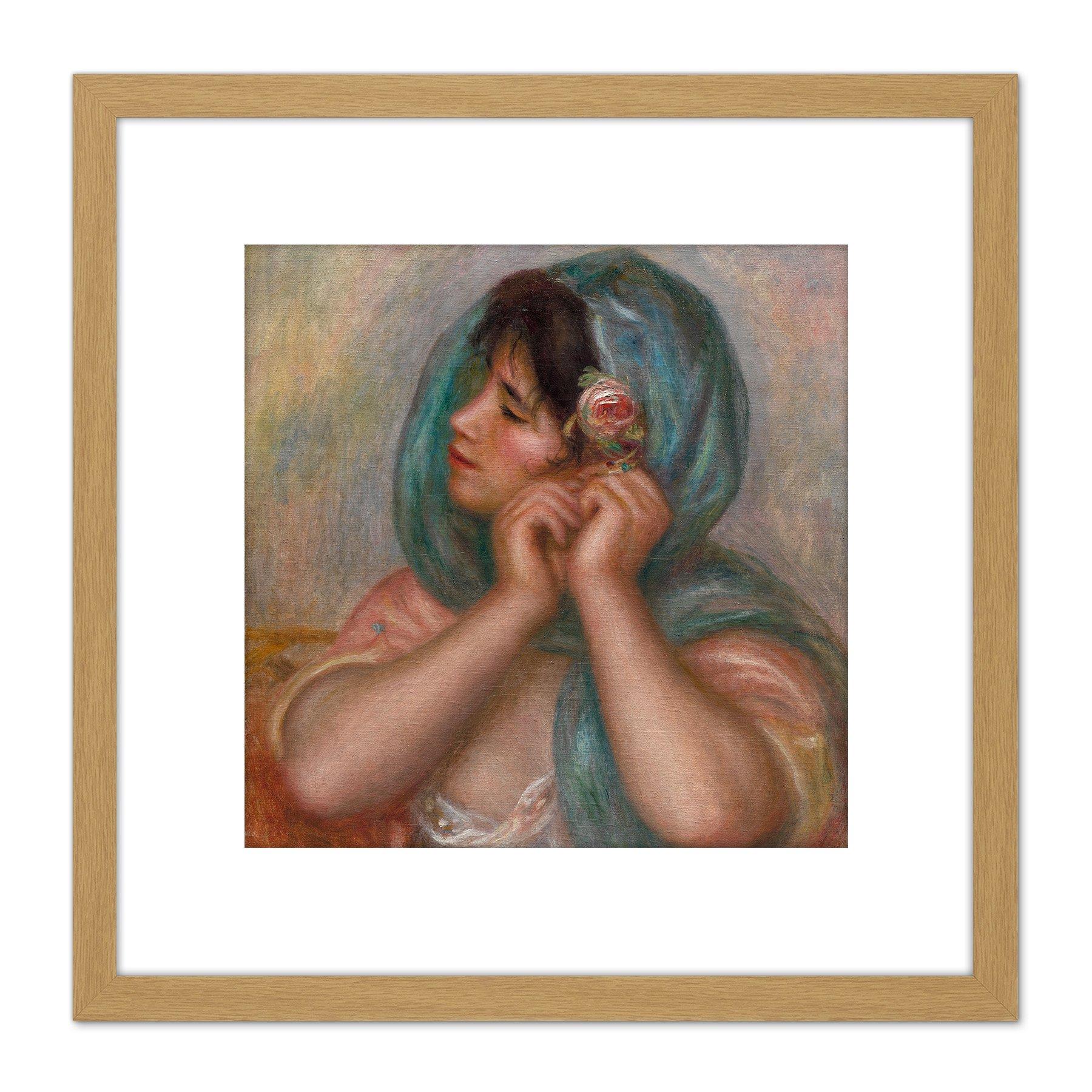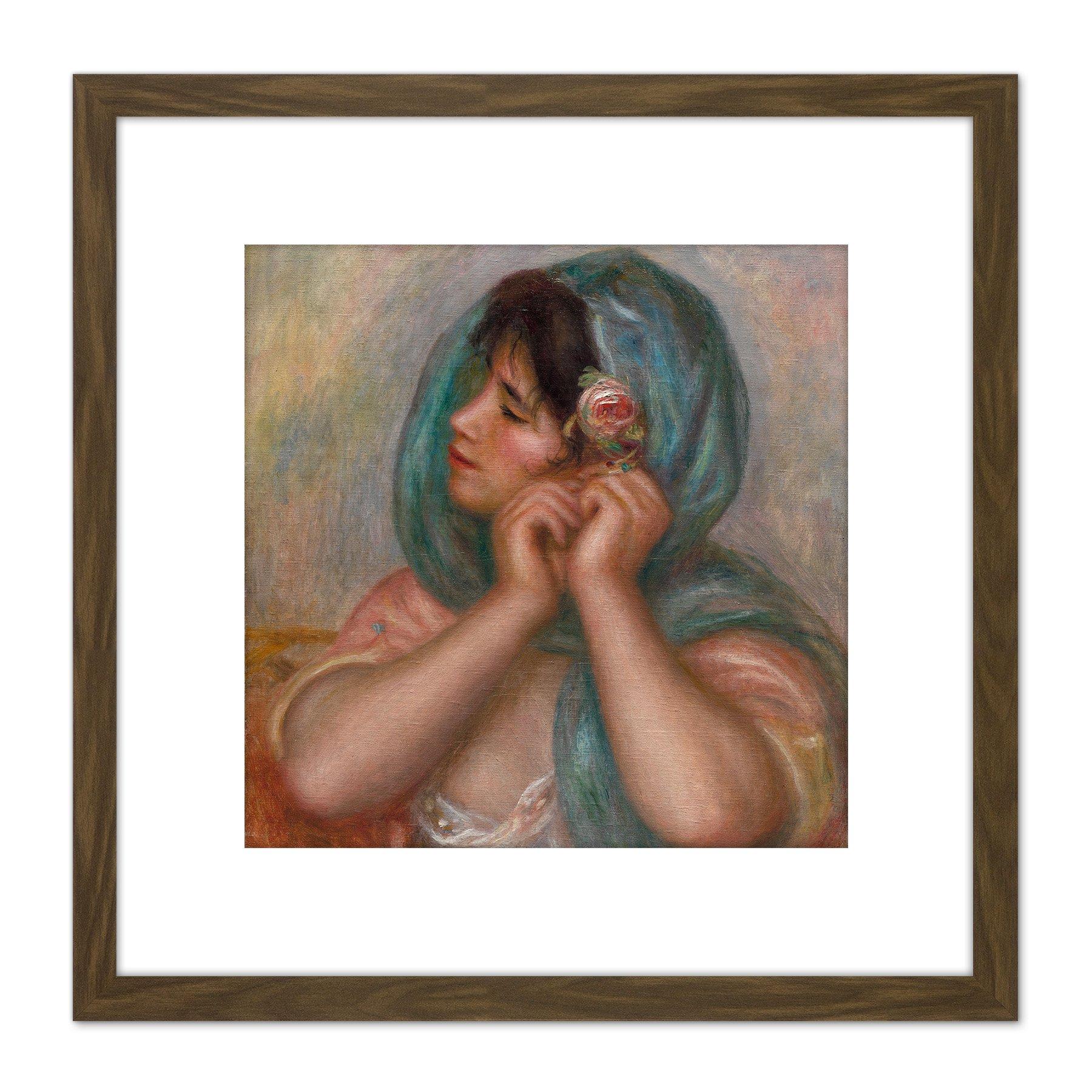 Renoir Young Woman Arranging Her Earring 8X8 Inch Square Wooden Framed Wall Art Print Picture with Mount