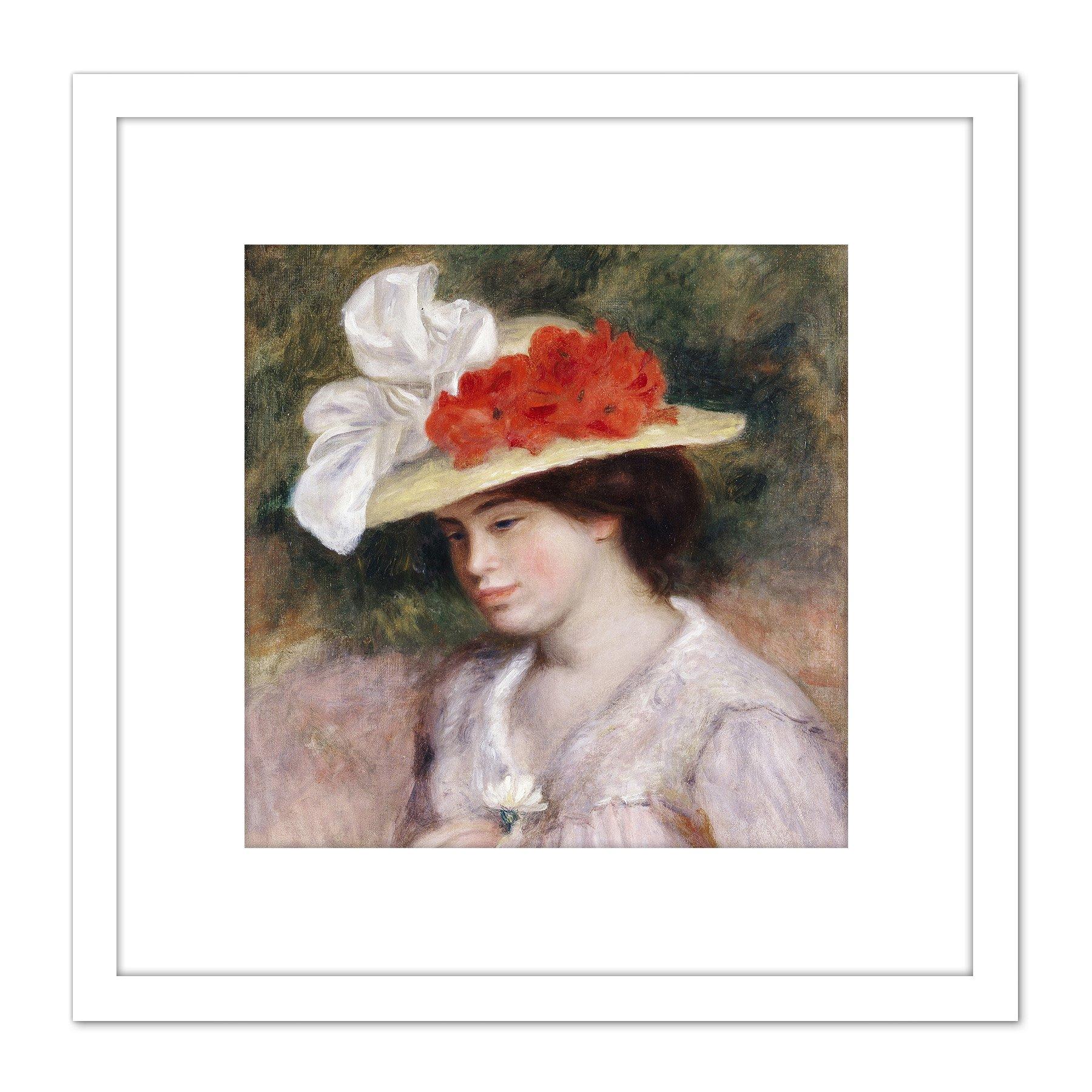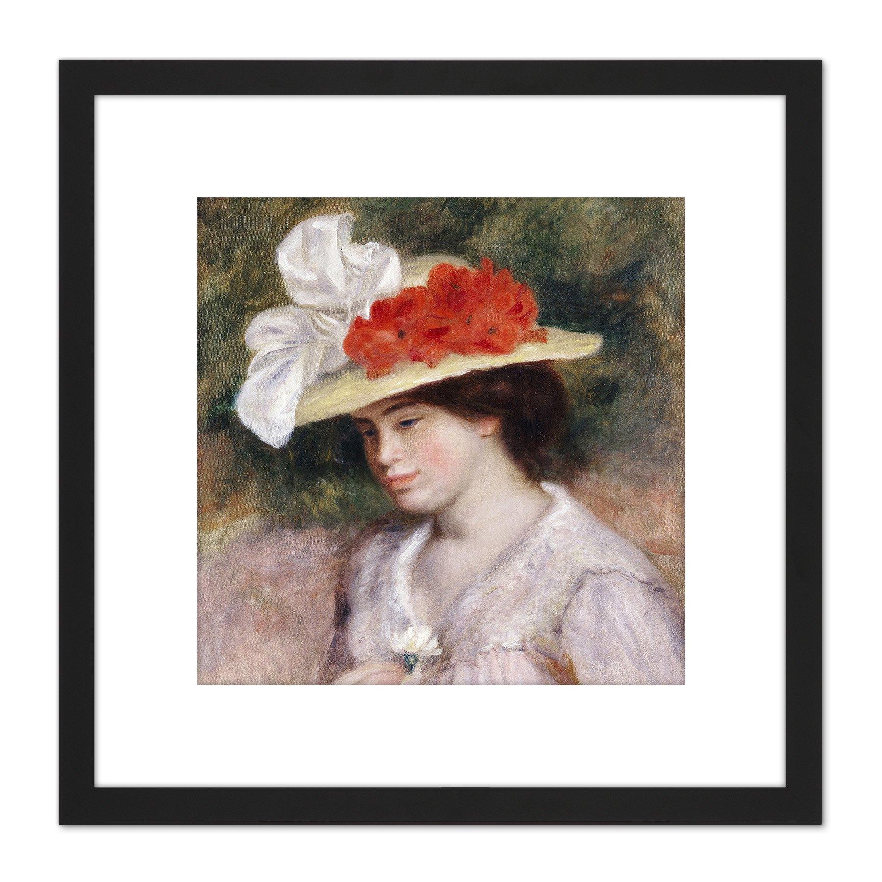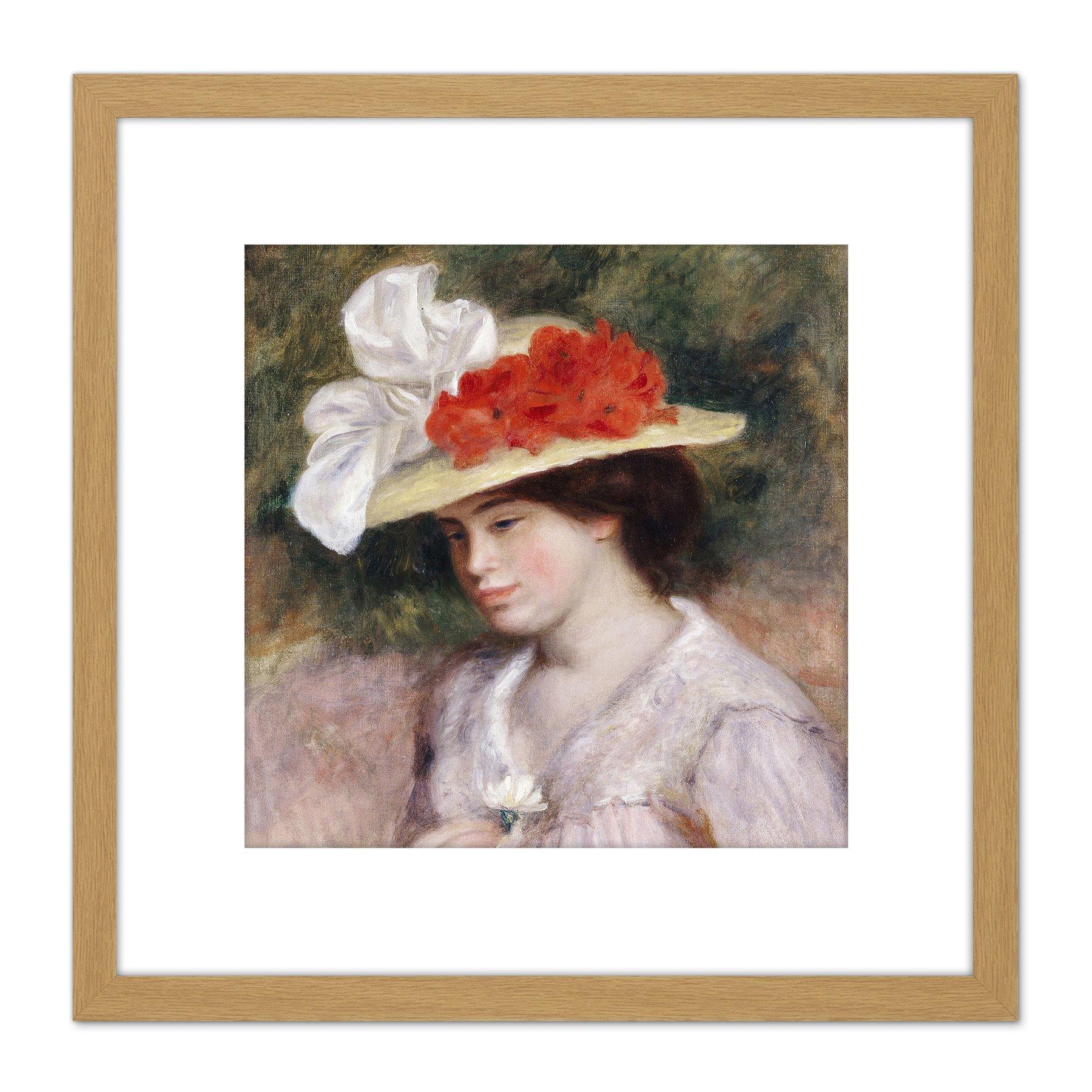 Pierre Auguste Renoir Woman In A Flowered Hat 8X8 Inch Square Wooden Framed Wall Art Print Picture with Mount