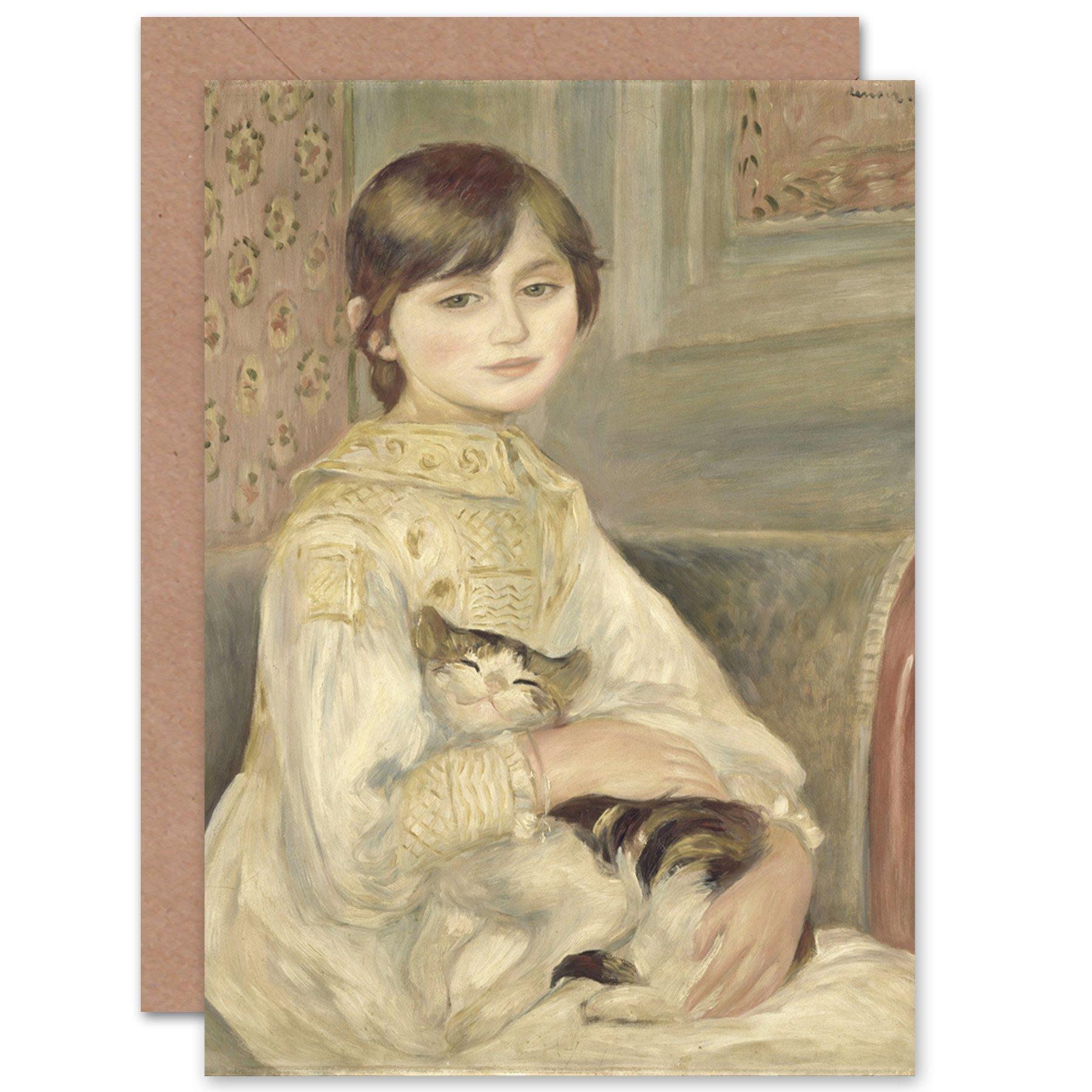 Renoir Julie Manet Child with Cat Fine Art Greetings Card Plus Envelope Blank inside
