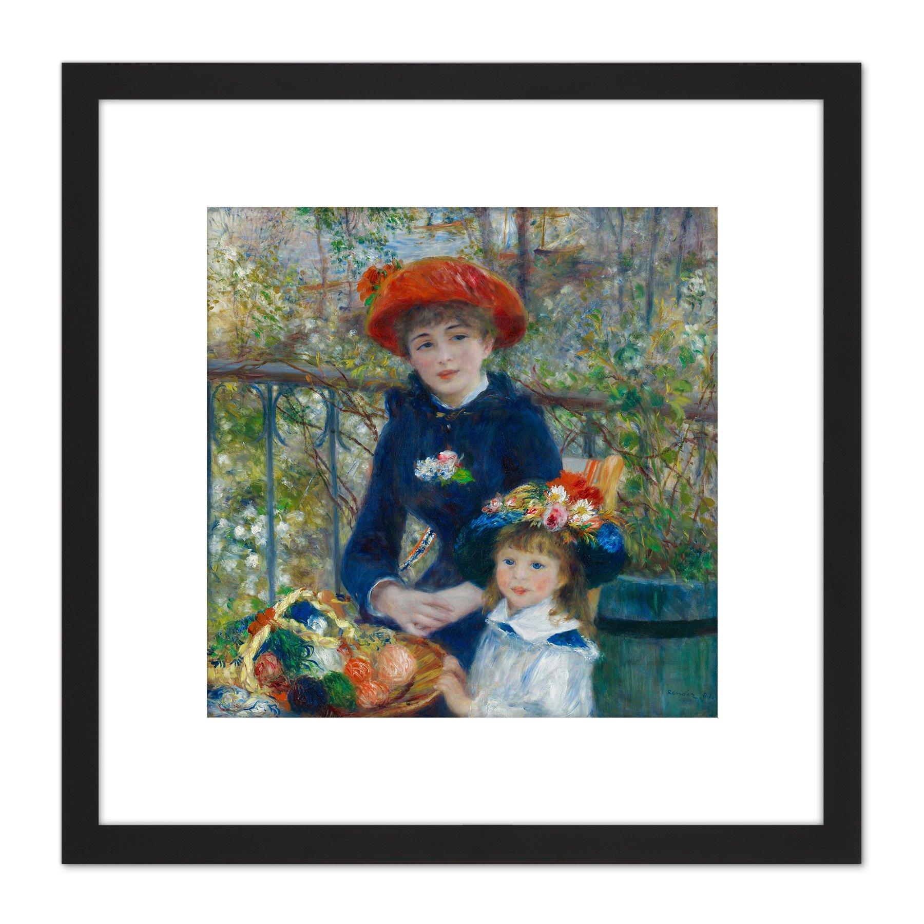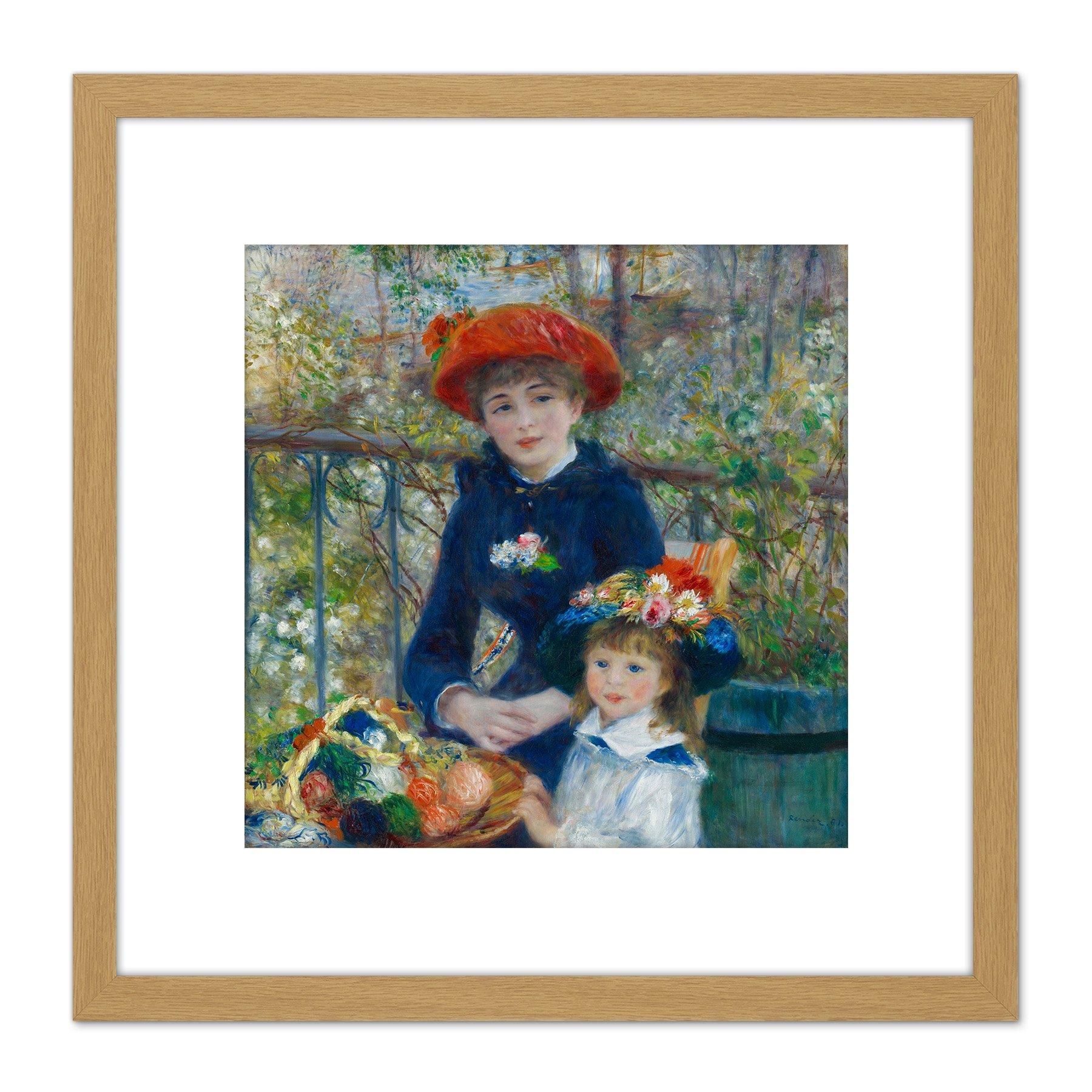 Renoir Two Sisters On The Terrace 8X8 Inch Square Wooden Framed Wall Art Print Picture with Mount