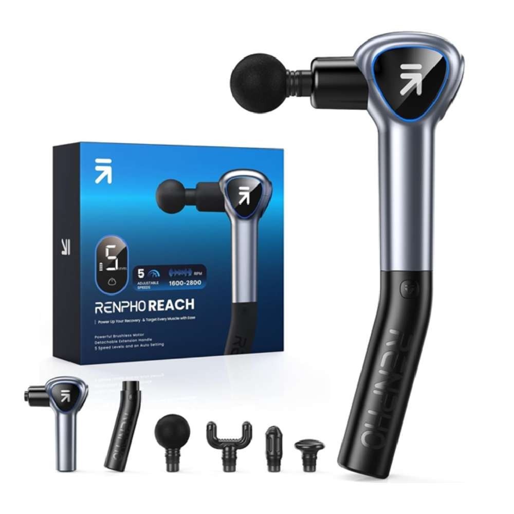 RENPHO Reach Handle Massage Gun with 5 Speed 4 Head,Mini Massage Gun with Exten