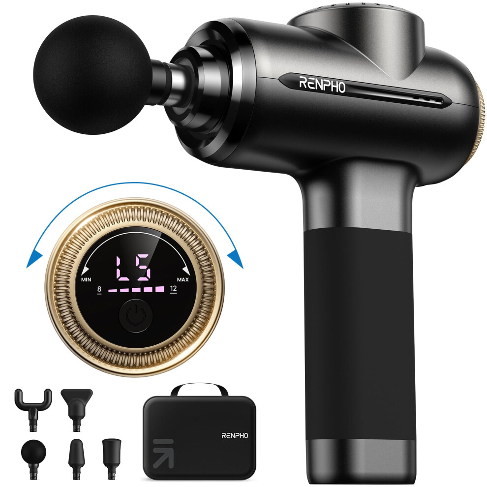 RENPHO Upgrade Power Massage Gun Deep Tissue, Powerful and Quiet Muscle Massage Gun, LCD Touch Control, Electric Handheld Massager for Muscle Pain