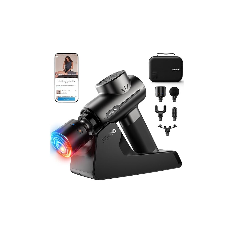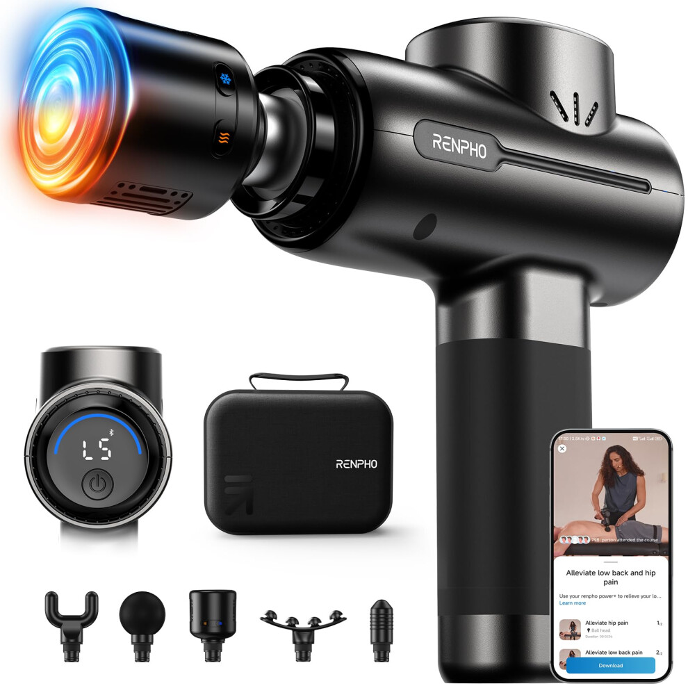 RENPHO Massage Gun with Heat and Cold, Percussion Muscle Deep Tissue Massage Gun Portable with APP, Electric Handheld Massager Gun, Muscle Massager Gun for Men and Women, Active+ Thermacool