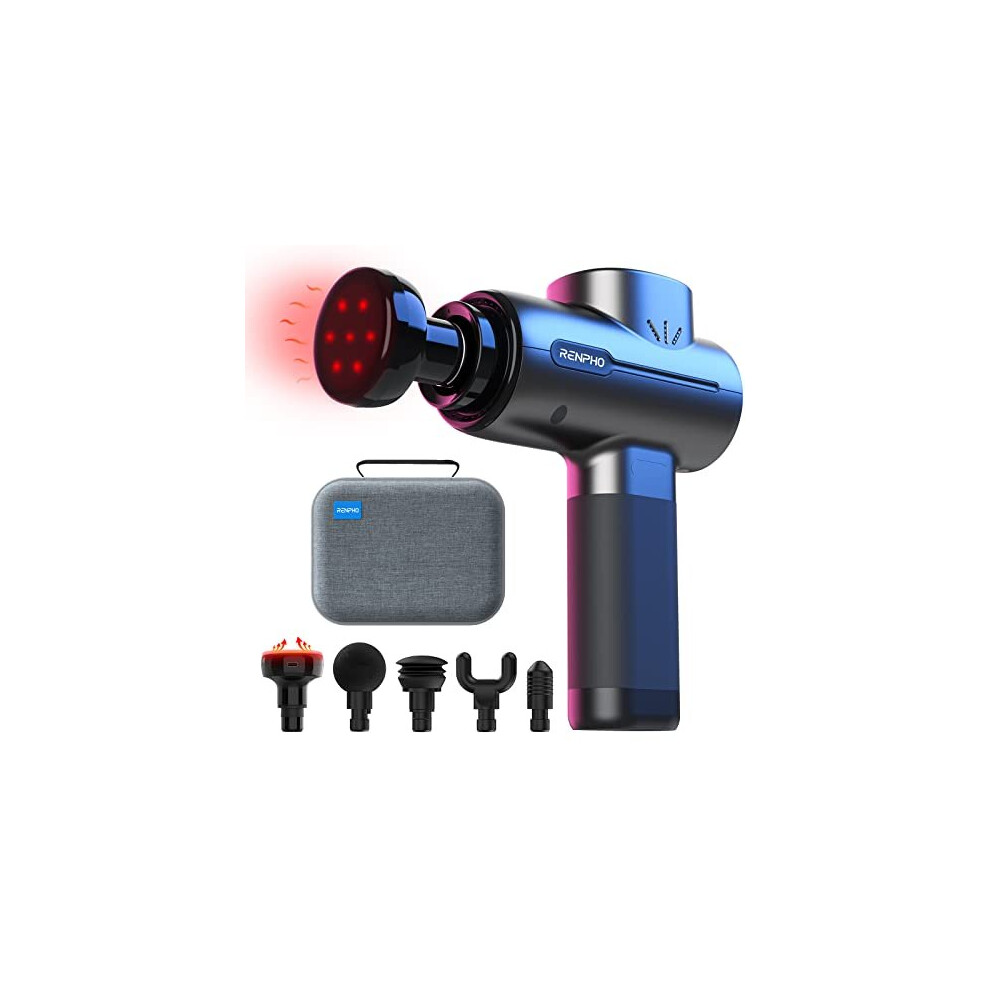 Massage Gun, RENPHO Massage Gun Deep Tissue with Heat Massage Head, Up to 3200RPM Muscle Massager with Type-C Charging, 2500mAh Battery for Muscle