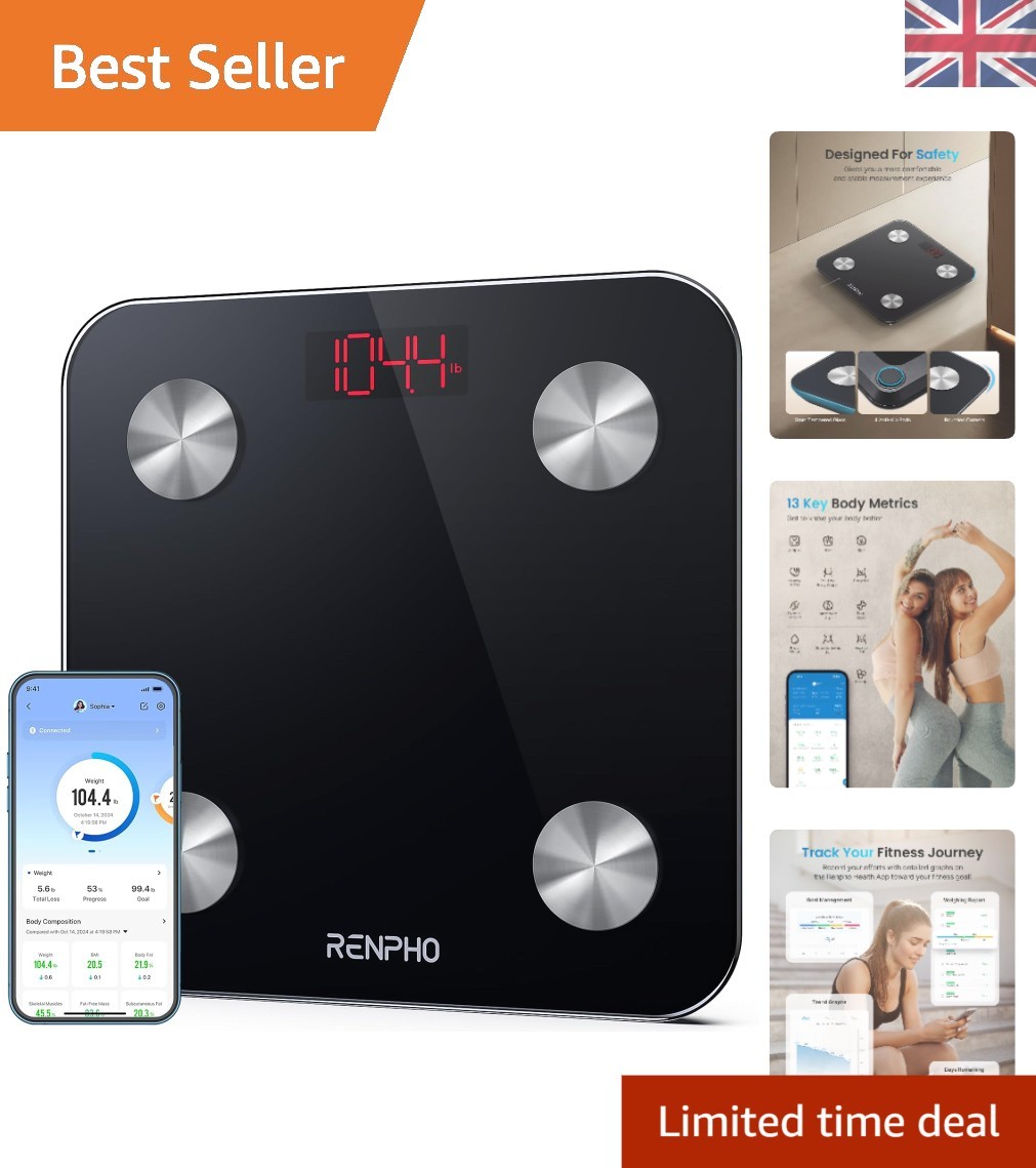 Renpho Smart Bathroom Scale - Accurate Body Composition & Bluetooth Sync, Black