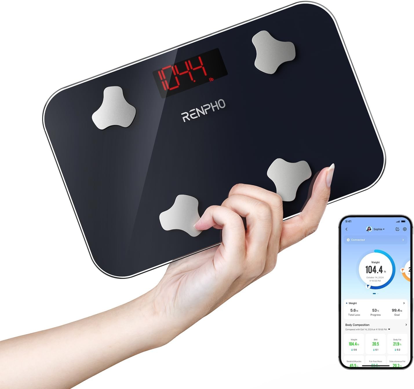 RENPHO Smart Bluetooth Body Fat Scale with App for BMI, Muscle Mass, Weight Trac