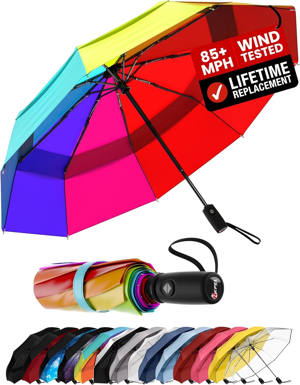 Repel Umbrella Windproof Travel Umbrellas for Rain - Easy Auto 10. Rainbow