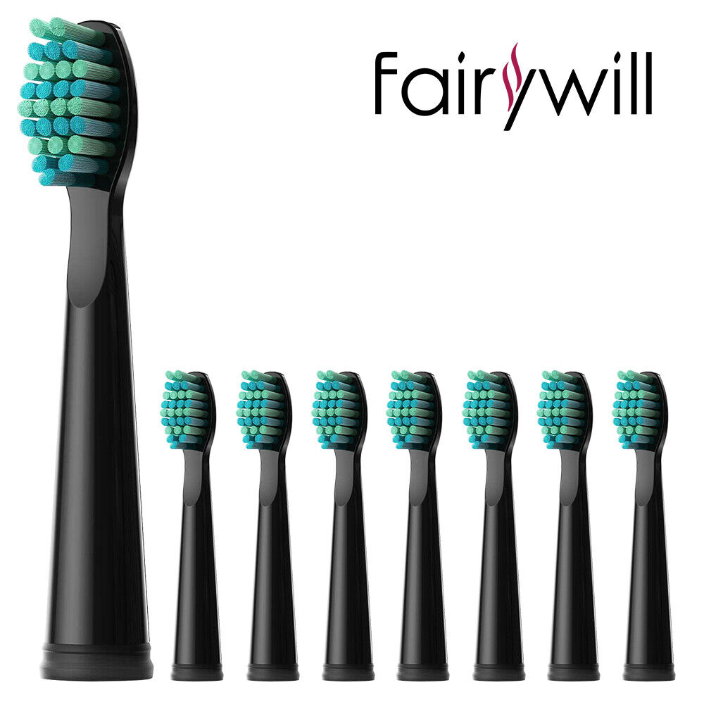Fairywill 8Pcs Black Soft Replacement Heads for Toothbrush FW-507 508 917 959