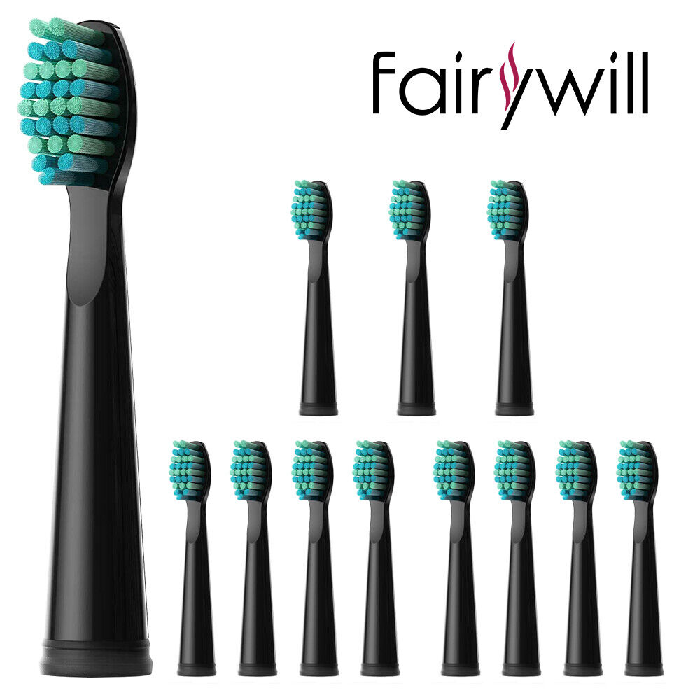 Fairywill 12Pcs Black Soft Replacement Heads for Toothbrush FW-507 508 917 959