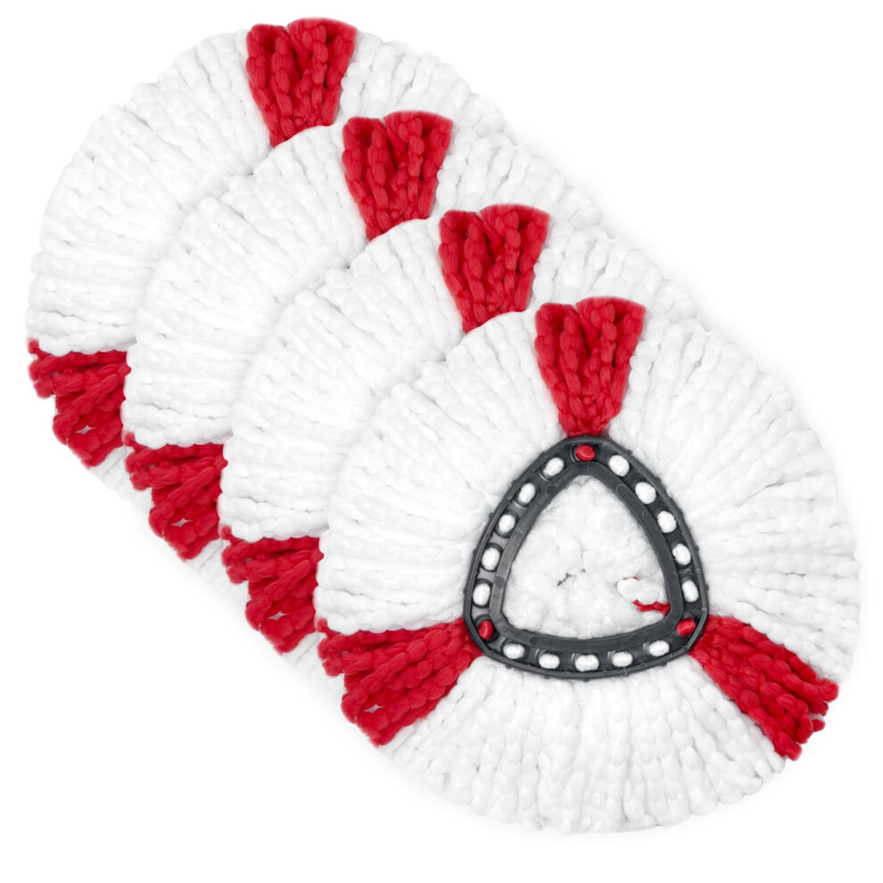 4 Pack Mop Heads, Compatible with Vileda Turbo Mop Heads Replacement, Triangle Spin Reusable Mop Replacement Head (Red)