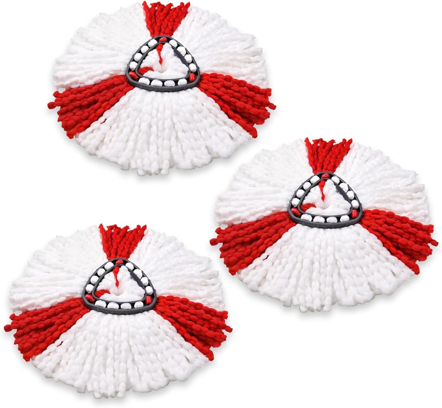 NICEMOVIC 3 Pack Mop Replacement Heads, Triangle Spin Reusable Mop Heads, Compatible with Vileda Turbo Mop Heads Replacement, Red (RTB-3T)