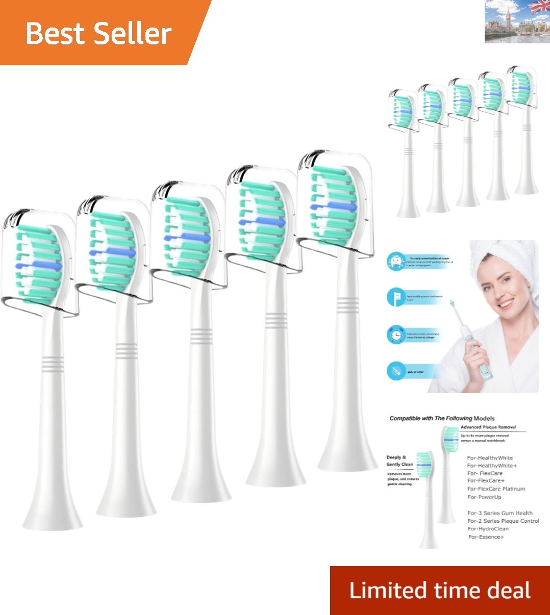 5-Pack Replacement Toothbrush Heads for Philips Sonicare - Soft Nylon Bristles