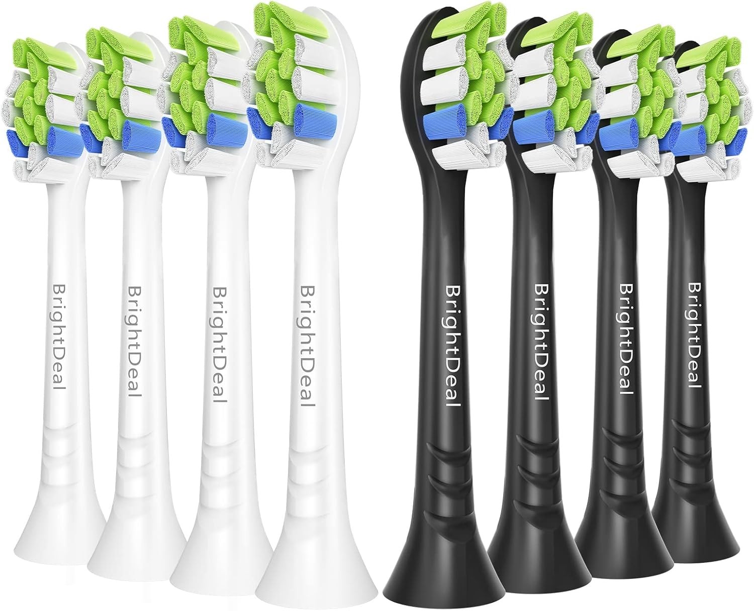 Brightdeal Replacement Toothbrush Heads Compatible with Philips Sonicare Electric Toothbrush for EasyClean HealthyWhite and Other Snap-On Handles, 4pcs White and 4pcs Black