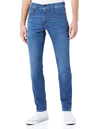 REPLAY Herren Jeans Anbass Slim-Fit Hyperflex mit Stretch, Blau (Medium Blue 009-6), 34W / 32L