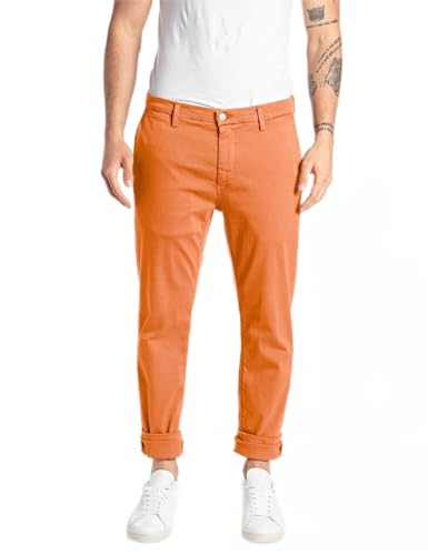 Replay Herren Chino Zeumar Slim-Fit Hyperflex X-Lite mit Stretch, Sunset Orange 844 (Orange), 38W / 34L