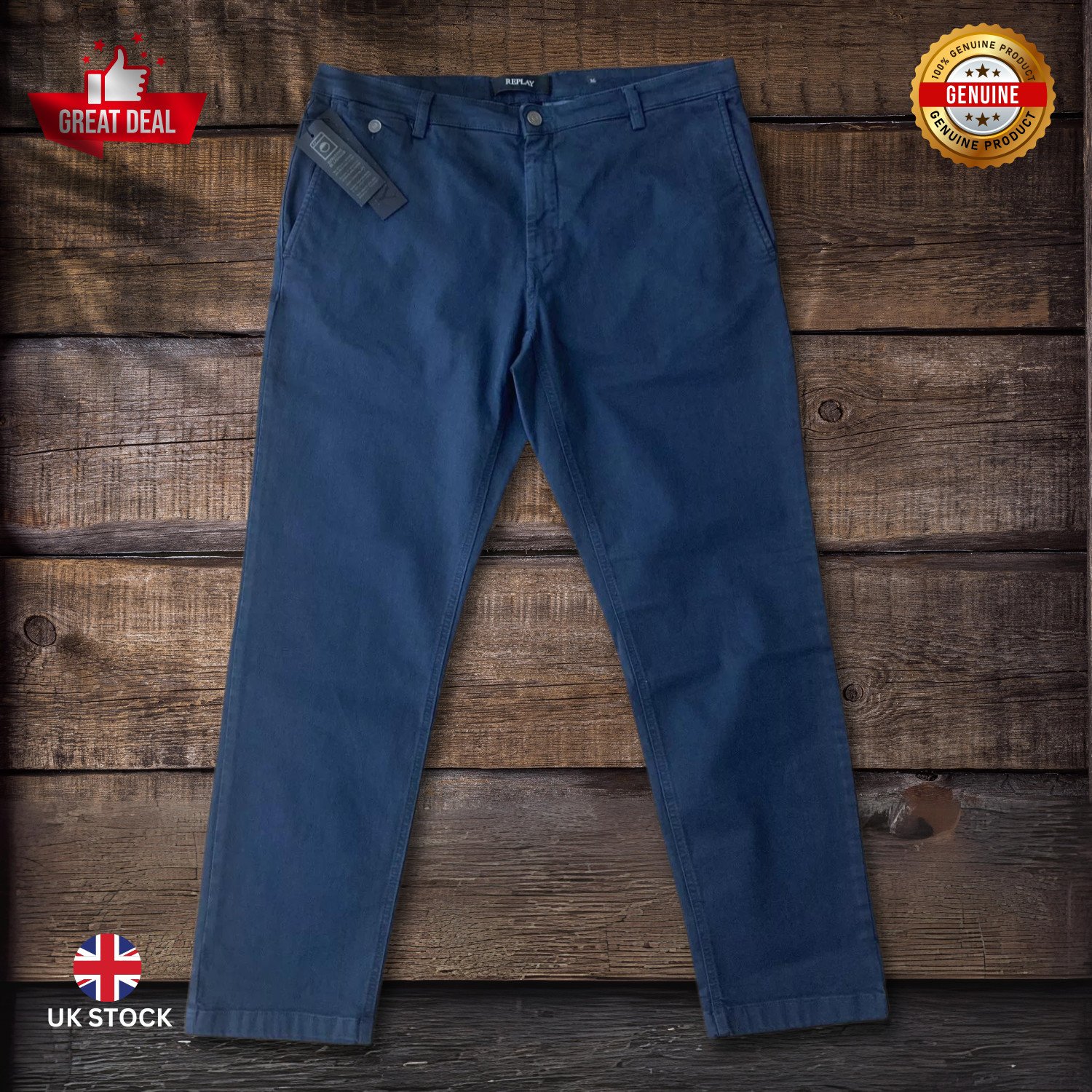 NEW Replay Mens Hyperflex Regular Fit Stretch Benni Trousers Blue W 30 / L 32