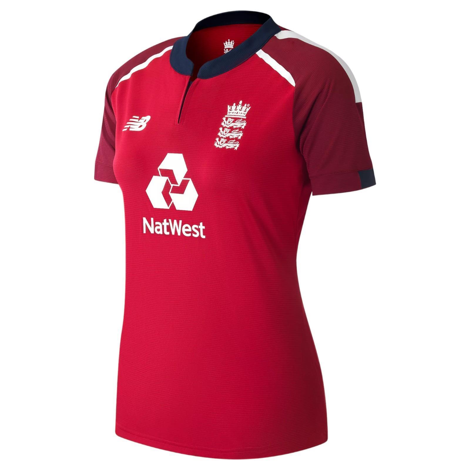 NEW BALANCE WOMANS ECB ENGLAND REPLICA T20 SS SHIRT JERSEY RED CRICKET WORLD CUP