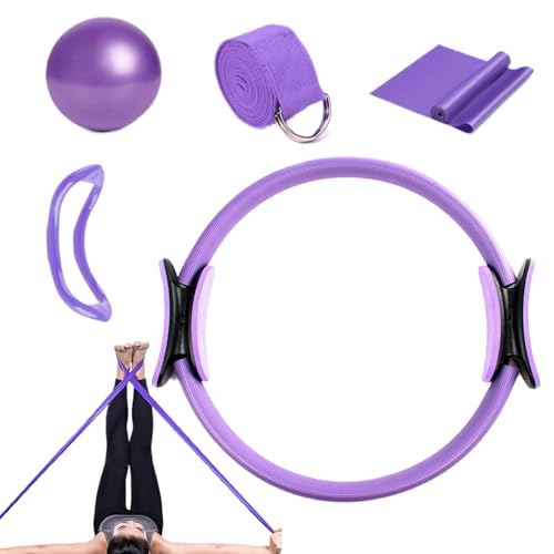 ETUCYNG Pilates Ring 5 x Ring Resistance Bands with Double Handles Yoga Resistance Band Wheat Tube Ball for Stability, Fitness and Core Strength