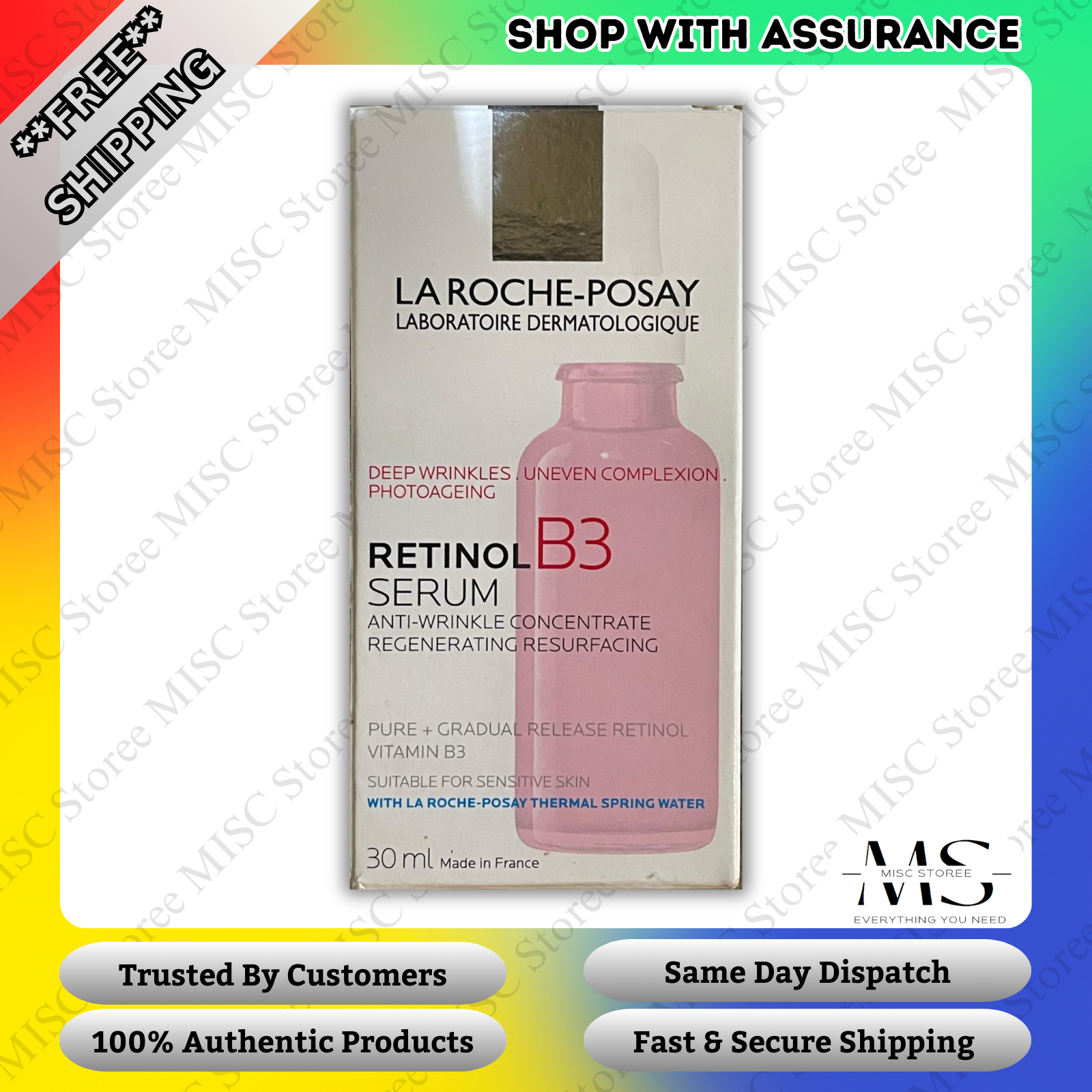 La Roche-Posay Retinol Vitamin B3 Serum 30ml Brand New Suitable for sensitive sk
