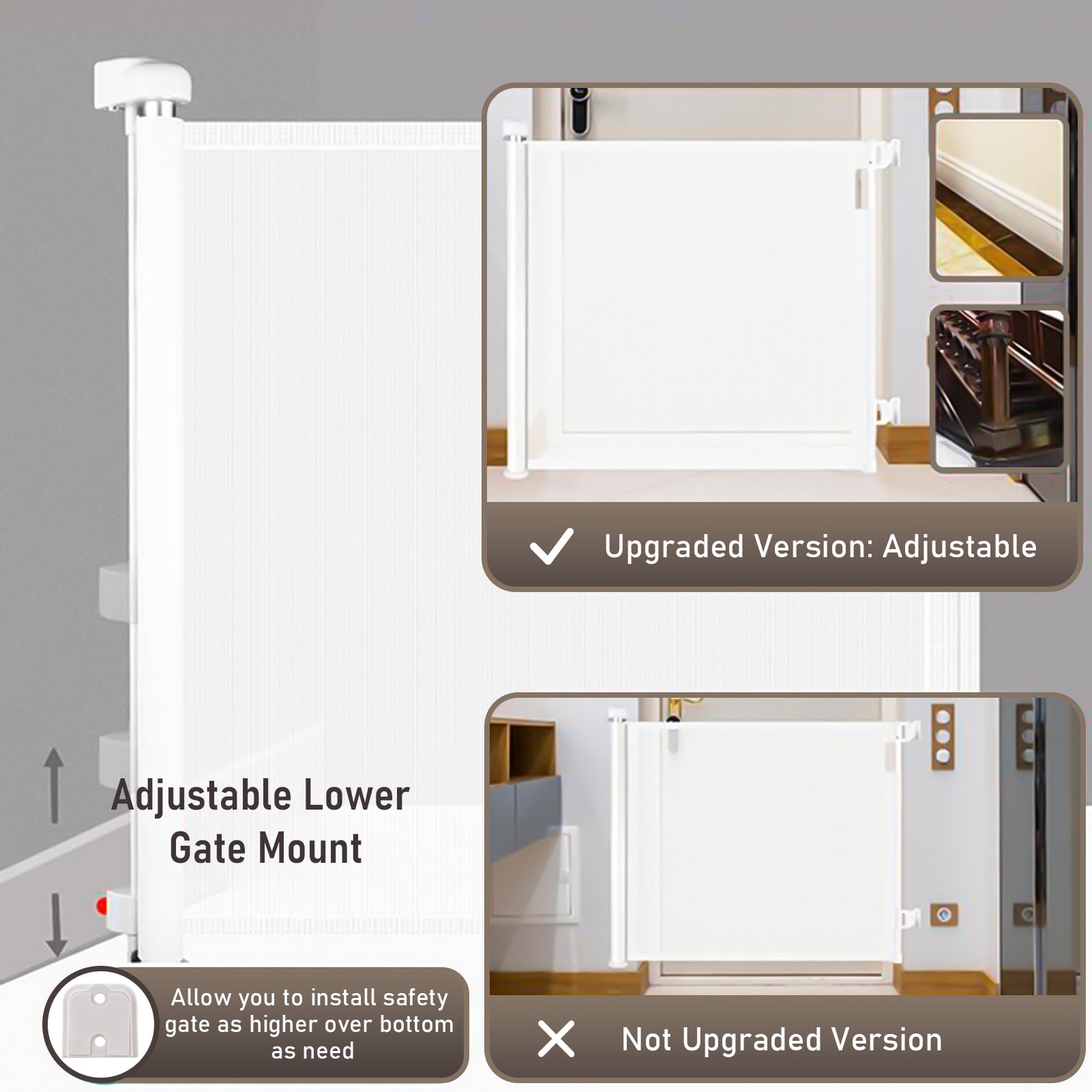 Retractable Baby Gate Dual Lock Mesh 180 Degree Rotatable Height Adjustable Easy