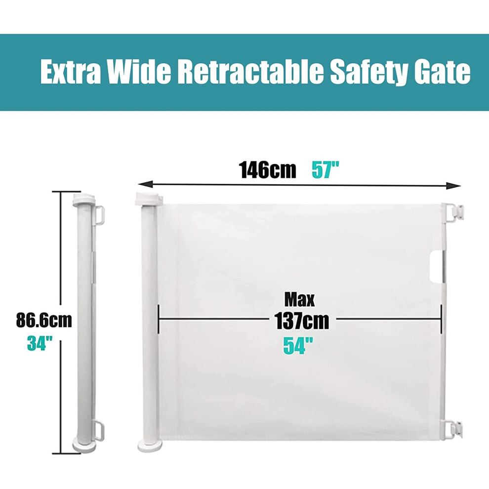 Retractable Baby Gate 87cm x 130 cm Stair Safety Gate Roll for Babies and Pets,