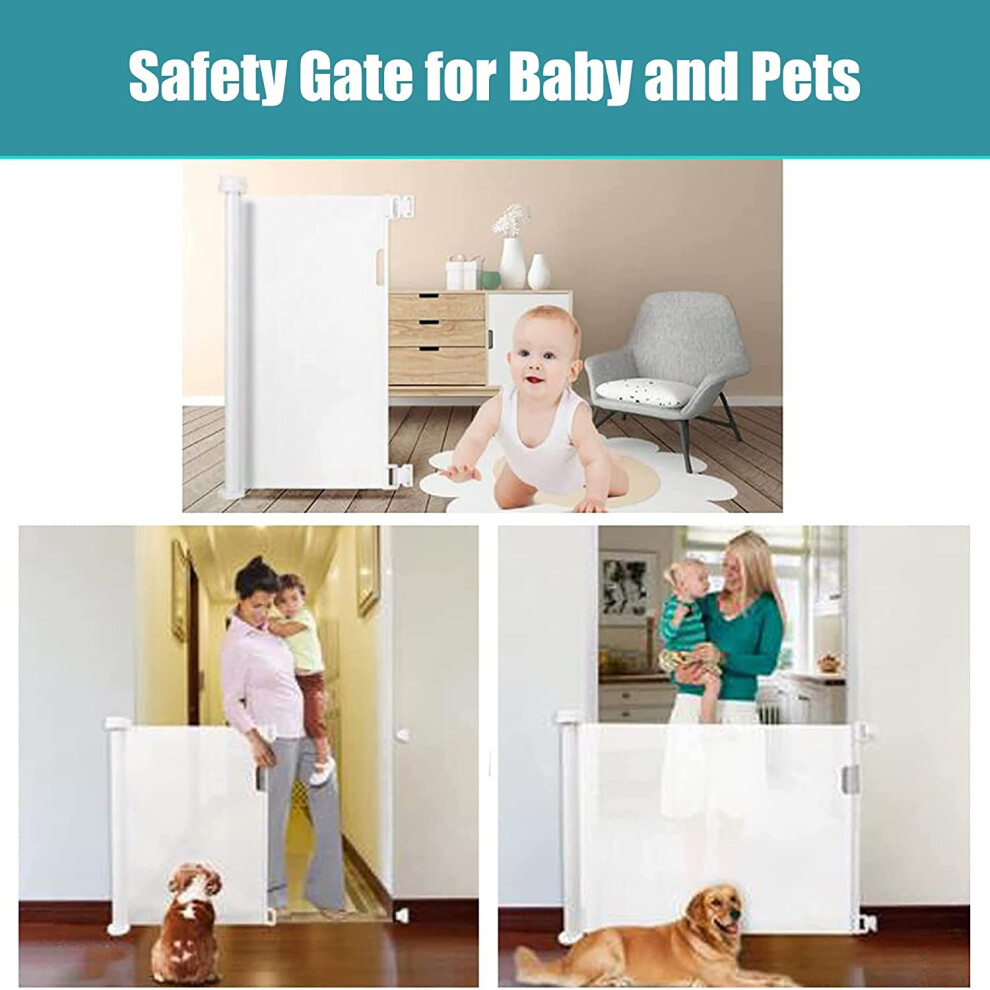 Retractable Baby Gate Safety Mesh Pet Gate Easy Roll Latch for Stairway Doorway