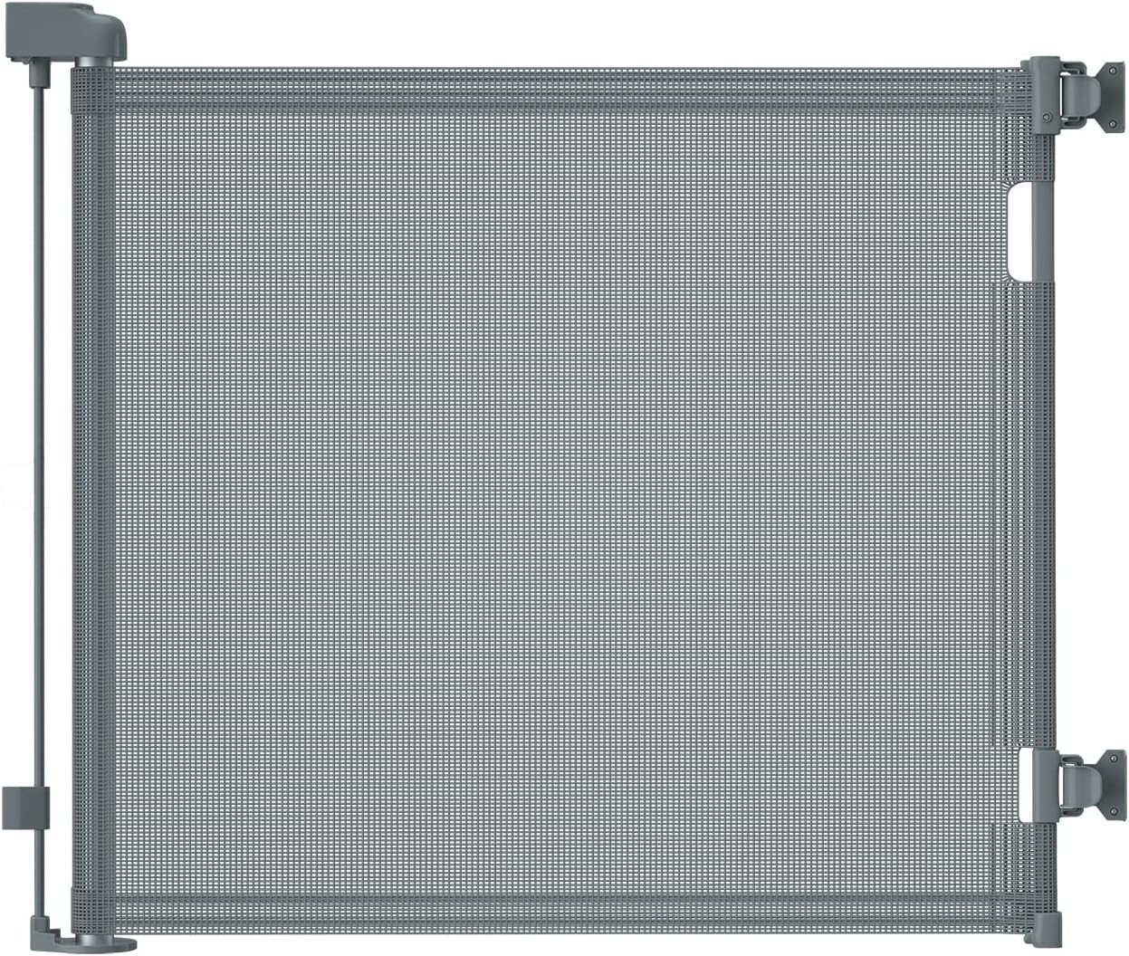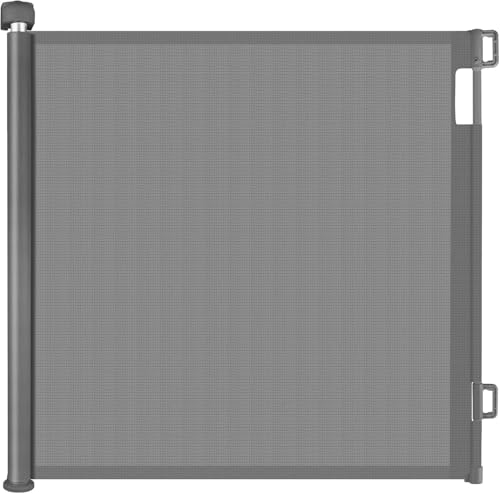 SPACEANY Retractable Safety Baby Gate or Mesh Dog Gate,Durable Portable Mesh Retractable Gate,Easy to Use for Stairs, Doorways, Hallways, Indoor, Outdoor, 33.5" Tall, Extends to 45" Wide,Grey