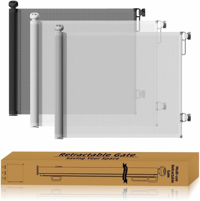 Retractable Baby Gate, Mesh Safety Kids or Pets Gate, 33” Tall, Extends to 55” W