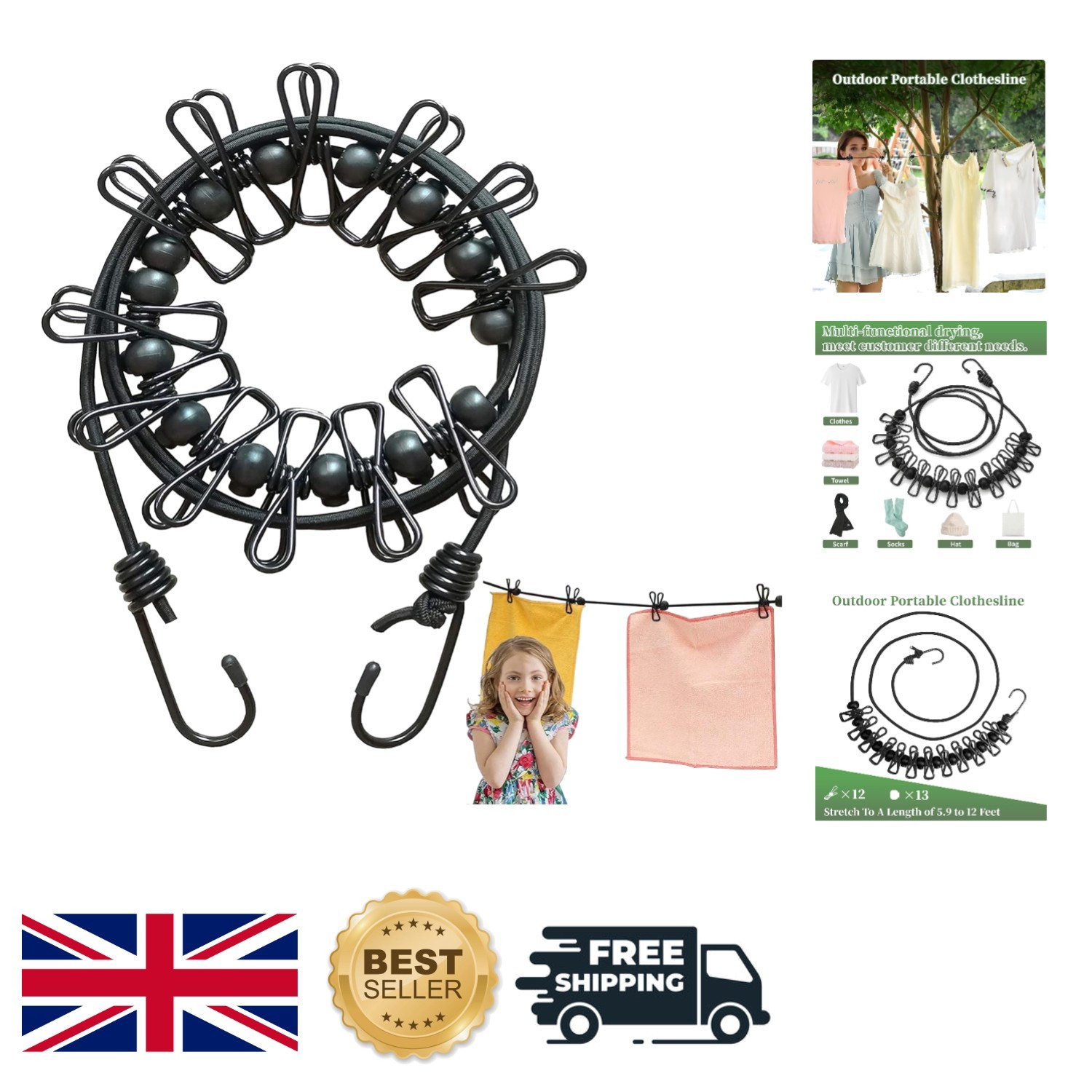 Compact Retractable Clothes Line - 10ft with 12 Heavy-Duty Clips for Camping
