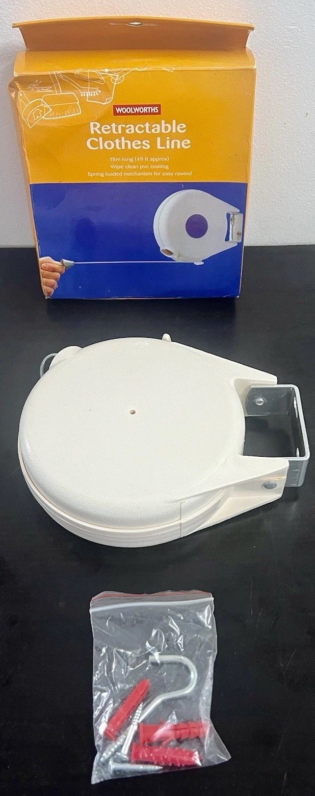 Woolworths White 15m Wall Mounted Retractable Clothes Line with Fixtures New