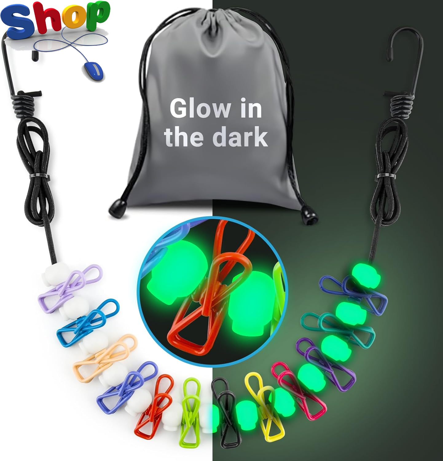 Retractable Travel Clothes Line - Travel Washing Line with Pegs That Glow in the