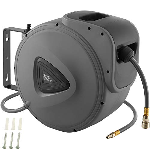DURHAND Retractable Air Hose Reel Auto Self-Winding Wall Mounted 1/4inch 10m+90cm, Grey