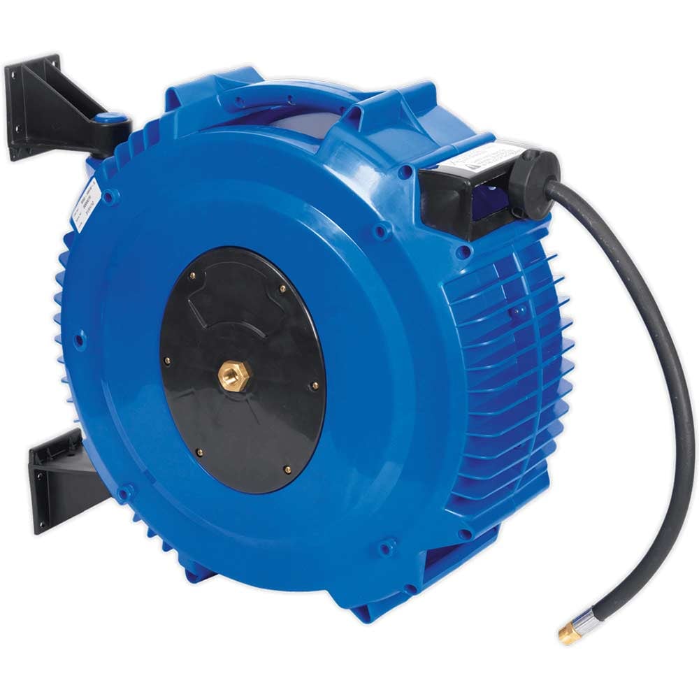 Sealey Heavy Duty Retractable Wall Mounted Hose Reel 1/2" / 12.5mm 15m Blue