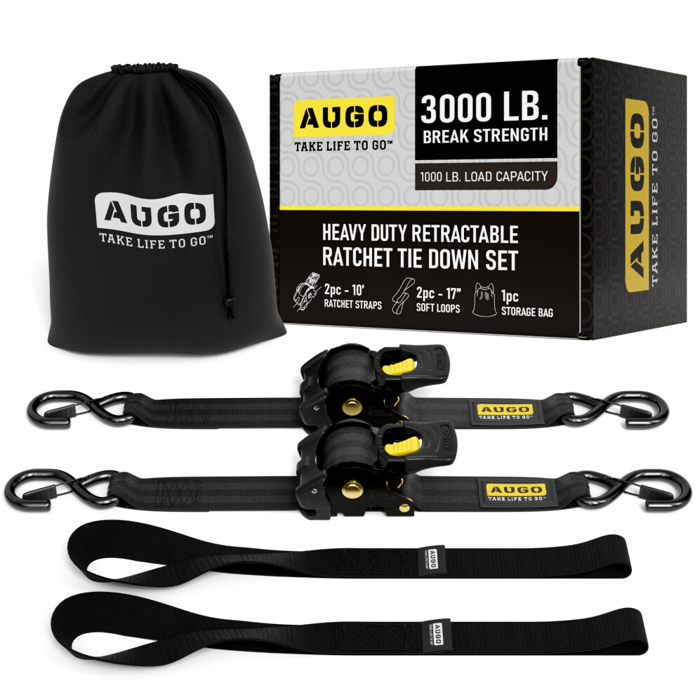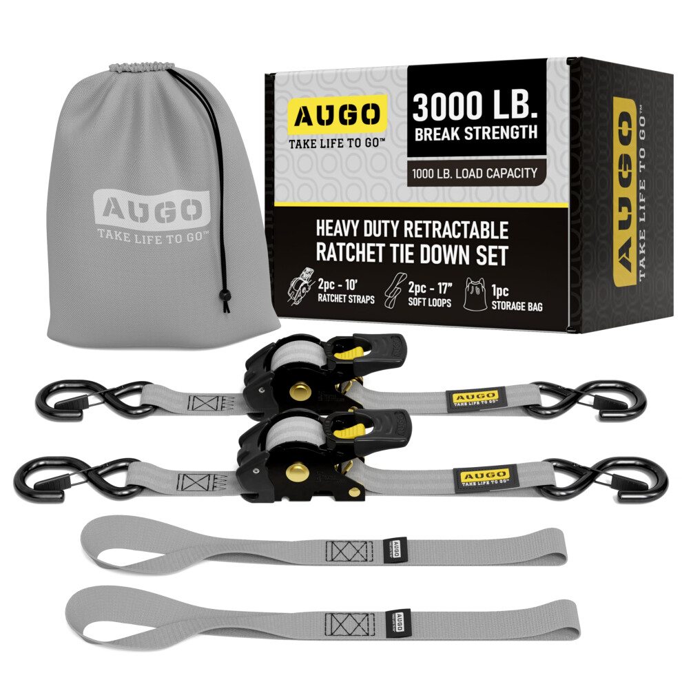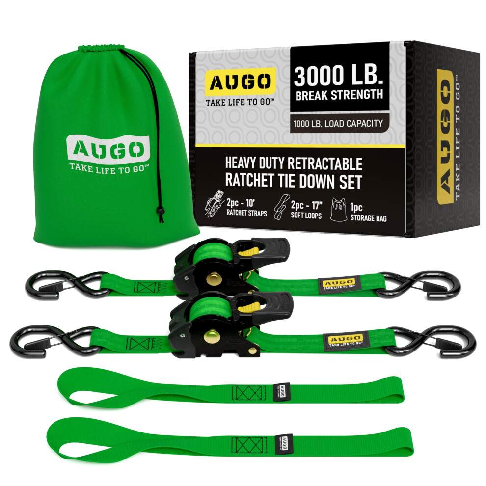 AUGO Retractable Ratchet Straps 2 Heavy Duty Ratchet Straps Self Retractable Tie Down Straps with Soft Loops Storage Bag for