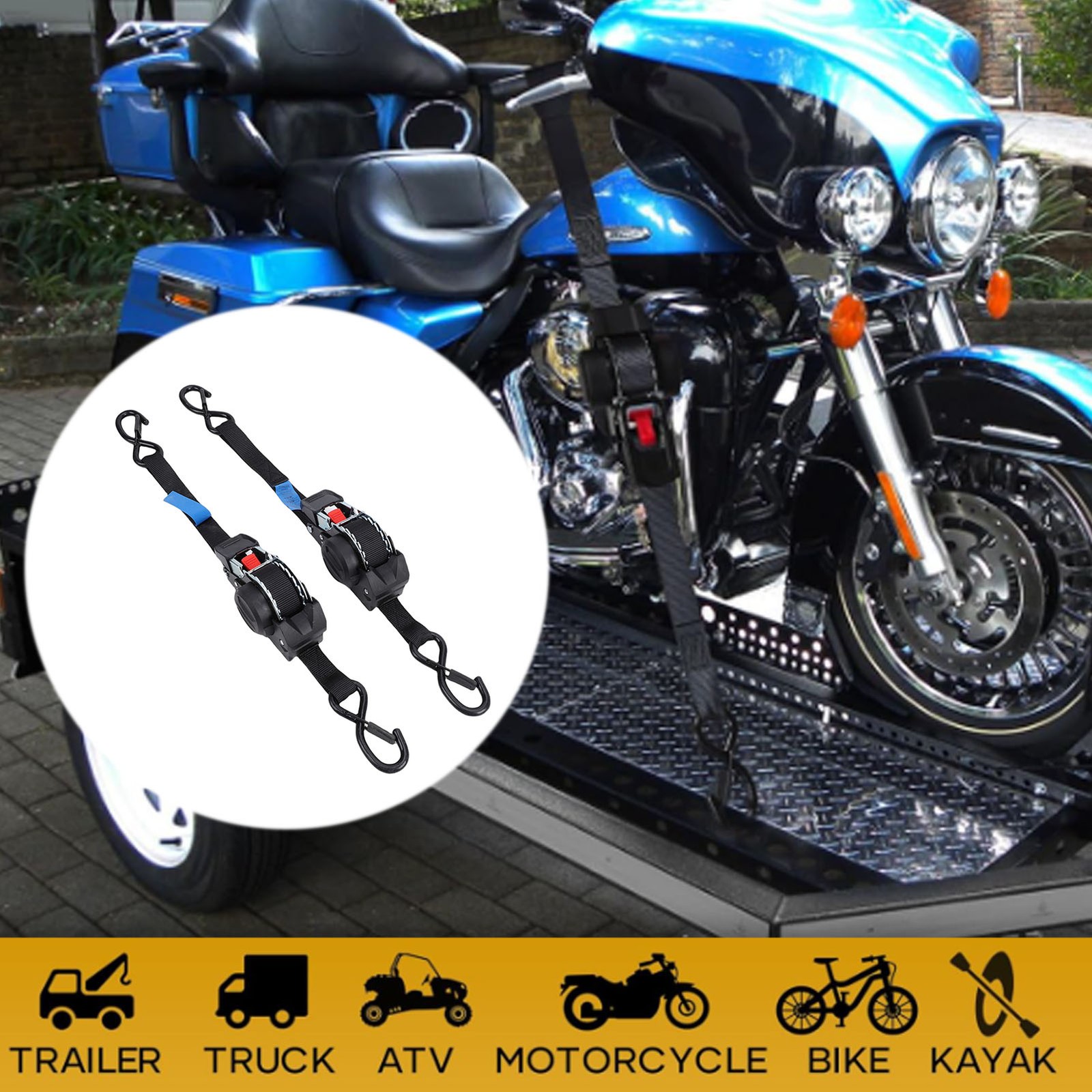 Retractable Ratchet Tie Down Straps 800kgs Max Break Strength Pack of 4 for Moving Cargo Motorcycle