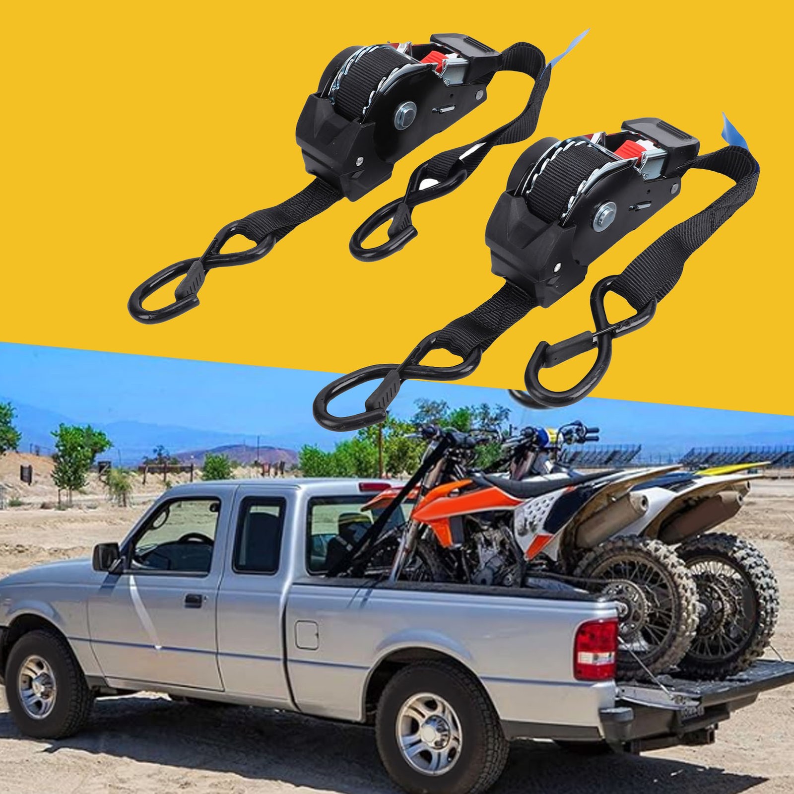 2pcs Ratchet Straps 1inch X 10ft Auto Retractable 1760lbs Breaking Strength Kit