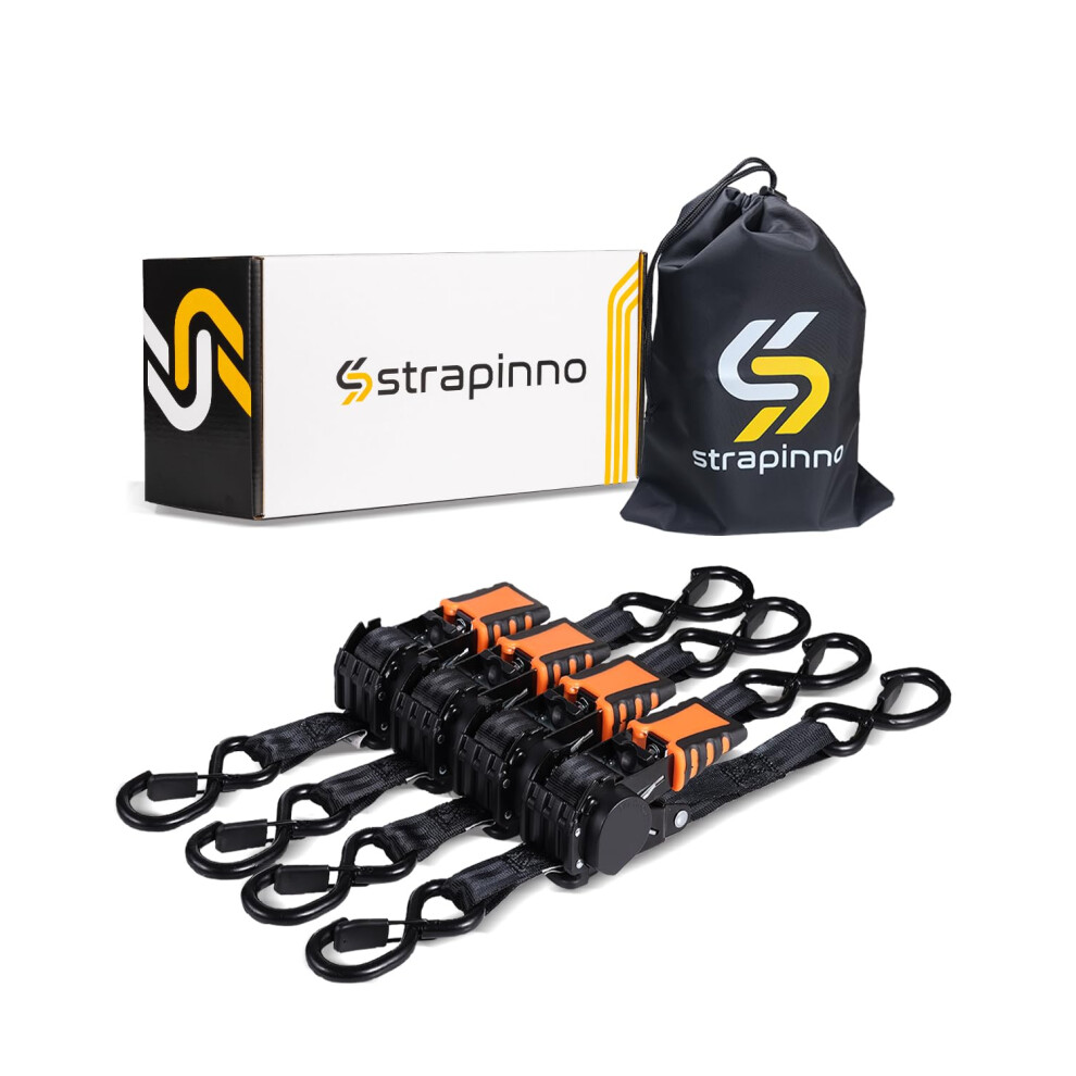 Strapinno 4pcs Retractable Ratchet Straps Bundle 1 in x 6 ft Secure Tie-Downs with Rubber-Coated Steel Handles S-Hooks & Durable Hardware for Daily