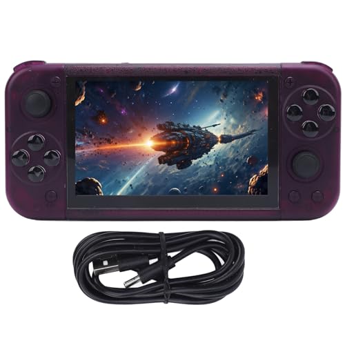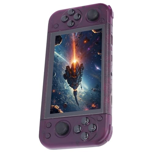 FAUOSWUK Handheld Retro Game Console, 5 Inch IPS Screen 2GB DDR4 USB C Portable Video Game Player with RGB Joystick Lighting (Transparent Purple)