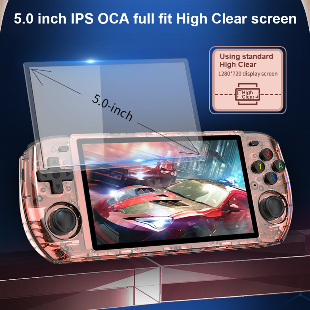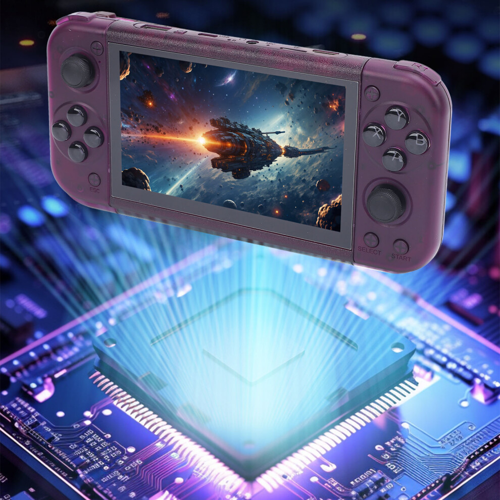 Handheld Retro Game Console 5 Inch IPS Screen 2GB DDR4 USB C Portable Video Game Console 64GB for Linux Transparent Purple