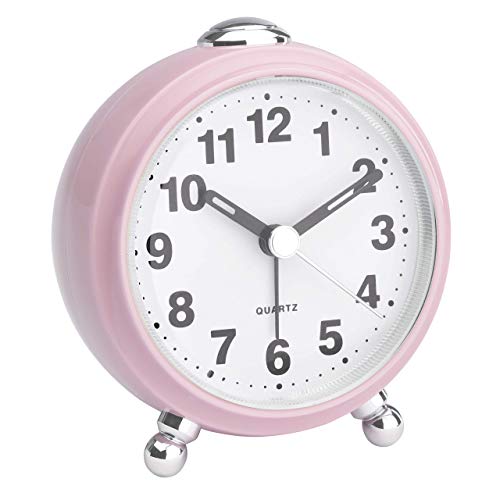 BLASHRD Analog Alarm Clock Non Ticking with Night Light Retro Silent Alarm Clock Battery Operated Mini Clock for Kids Bedroom A