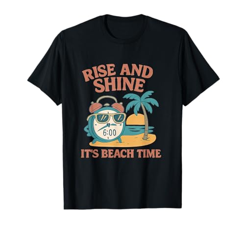 Rise and Shine Beach Squad Retro Alarm Clock Design T-Shirt