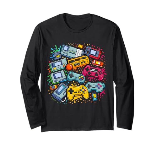 Video Game Console Controllers Retro 80's 90's Gaming Arcade Long Sleeve T-Shirt