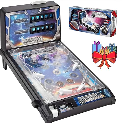 Mini Pinball Machine, Space Theme Pinball Machine Gifts, Electronic Desktop Ball Shooting Game with Lights and Music, Classic Retro Arcade Pinball Machine Toy for Kids Christmas