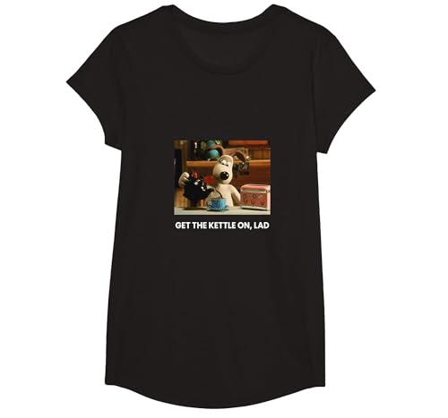 Wallace & Gromit Get The Kettle On Lad Retro Cartoon PAPL778 T-Shirt, Girls, Black, X-Small