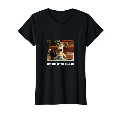 Wallace & Gromit Get The Kettle On Lad Retro Cartoon PAPL778 T-Shirt, Women, Black, X-Small