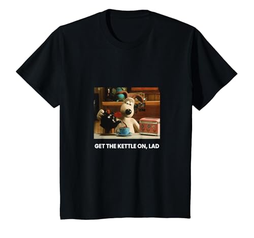 Wallace & Gromit Get The Kettle On Lad Retro Cartoon PAPL778 T-Shirt, Youth, Black, X-Small